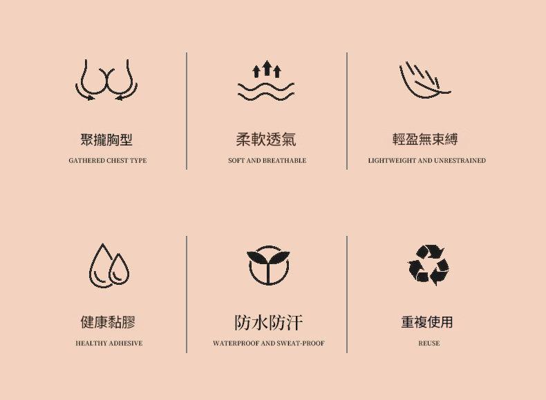 隱形無痕 自然貼合 聚攏塑形 提升胸型 矽膠材質 安全舒適