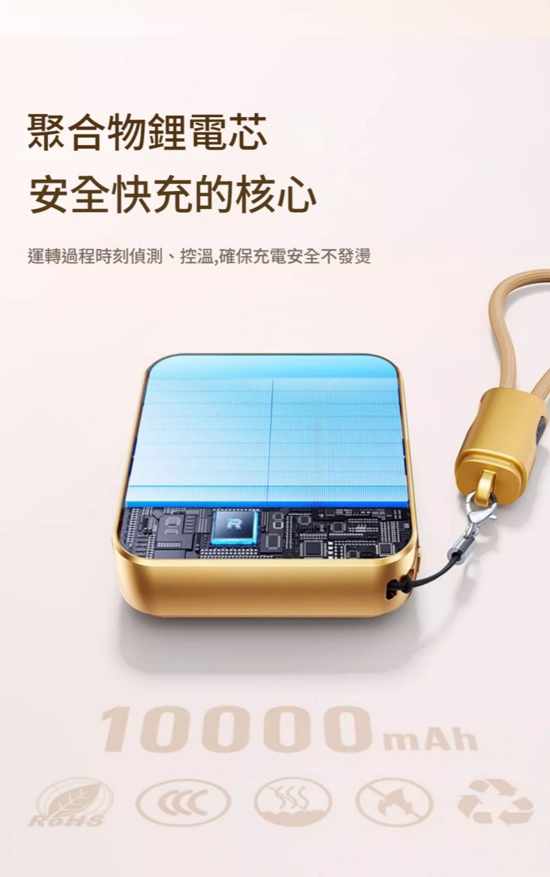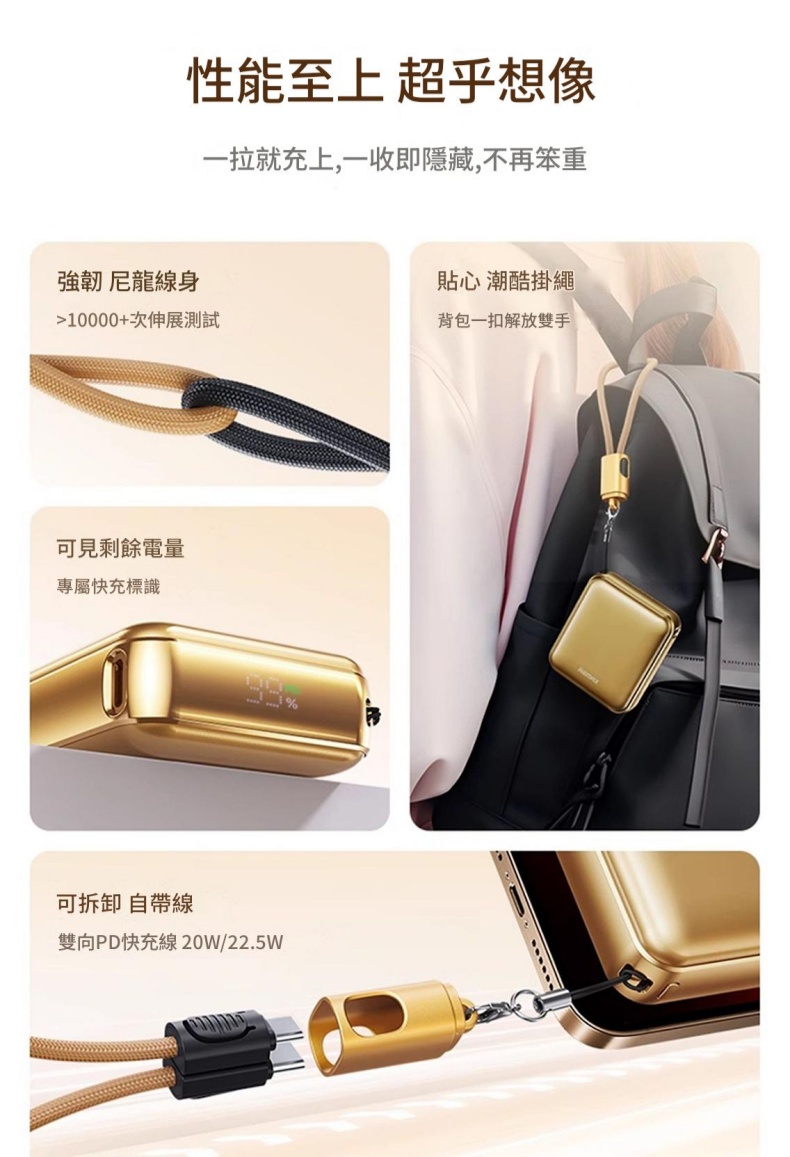 22.5W 超級快充 是挂绳也是快充线 聚合物电芯安全耐用 Type-C 双向快充 智能数显