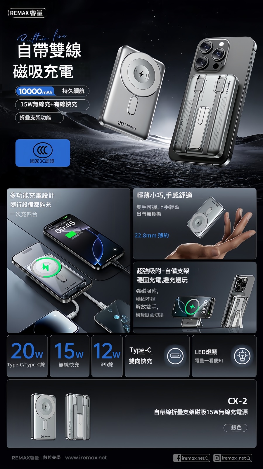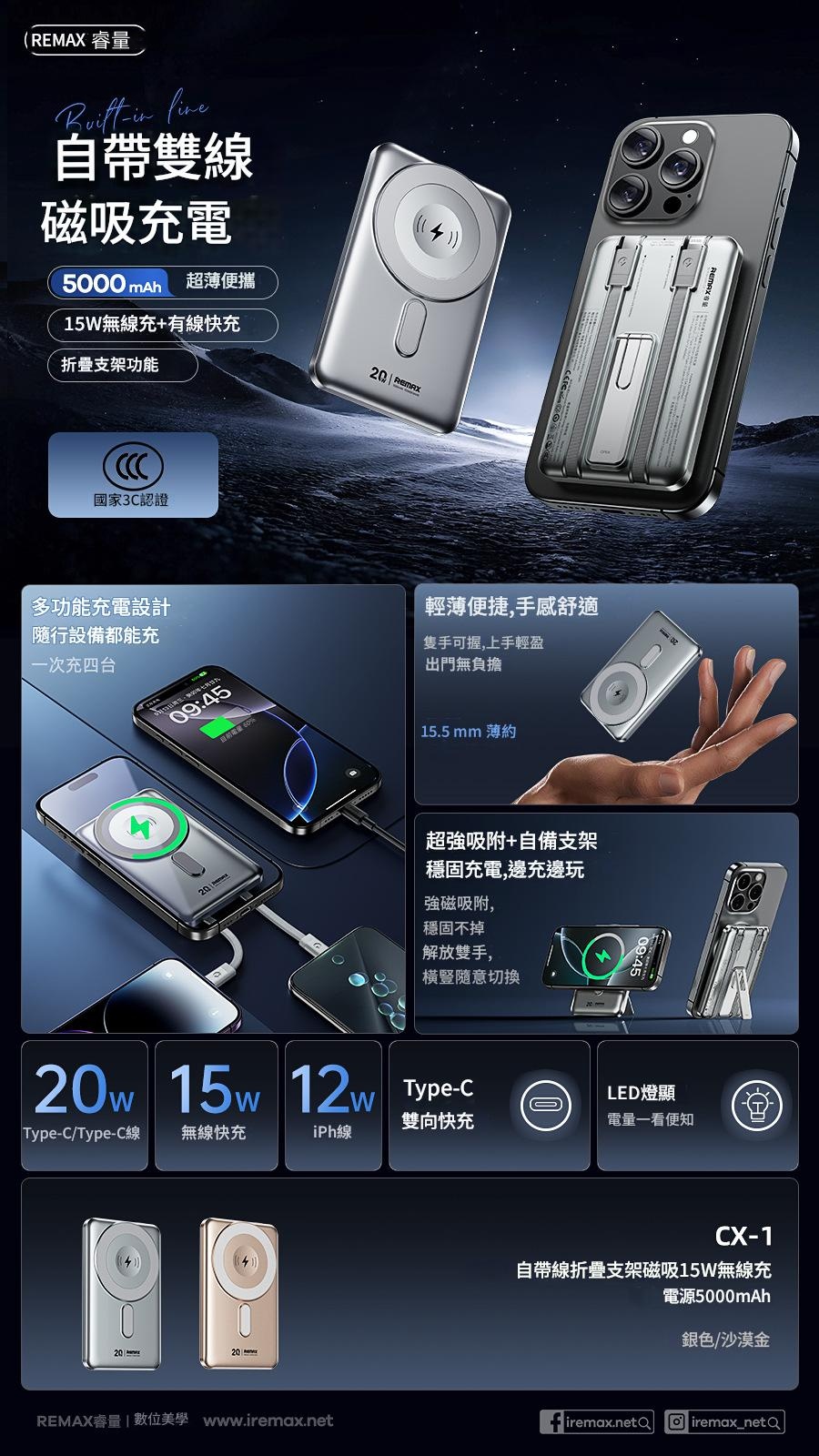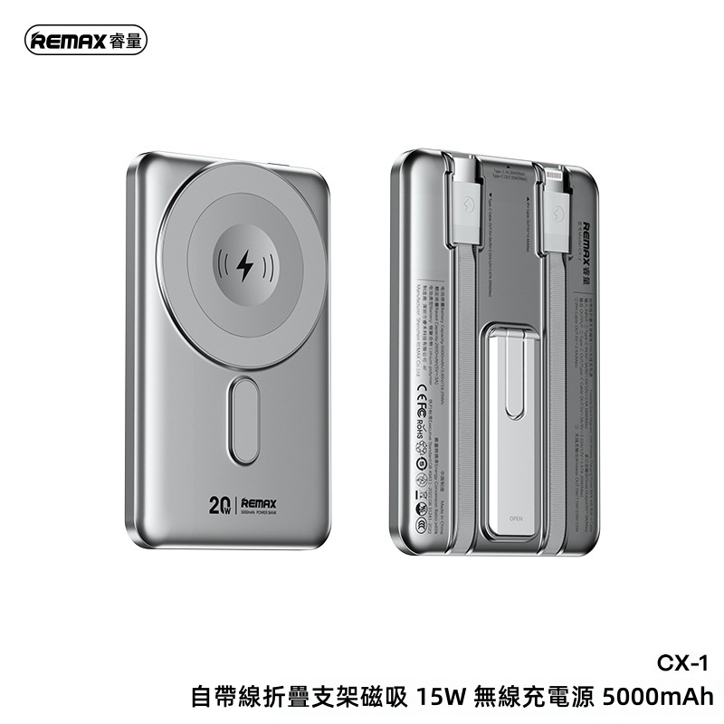 REMAX 三合一自帶線折疊支架磁吸15W無線充移動電源22.5W 10000mAh MC-01 尿袋