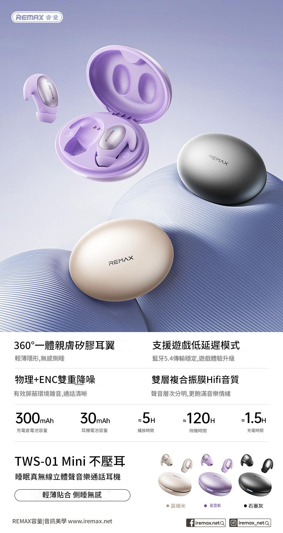 輕薄貼合側睡不壓耳 機身一體 360°矽膠包圍 支援遊戲低延遲模式 物理+ENC雙重降噪