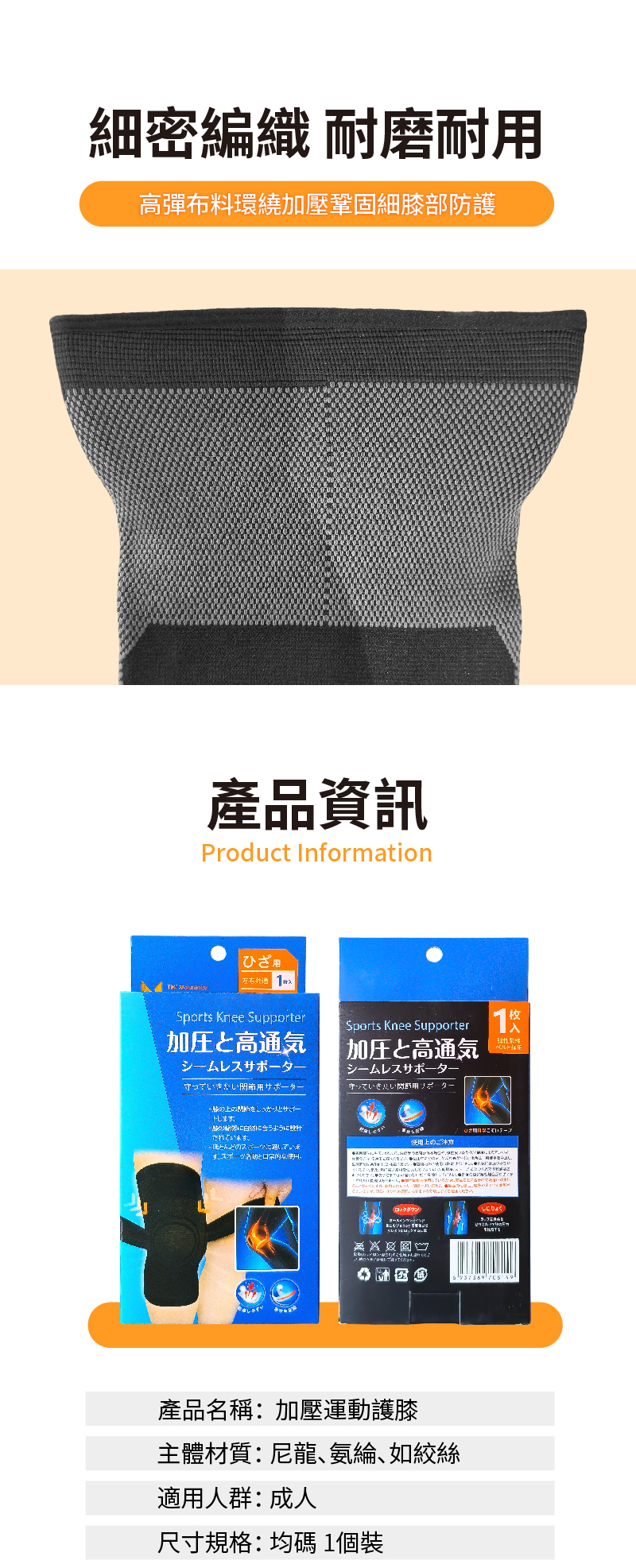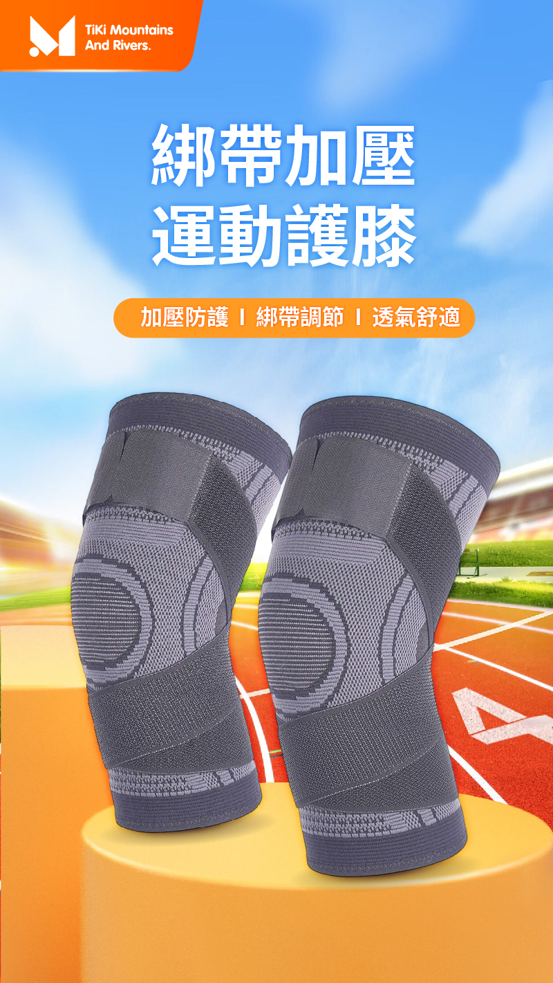 綁帶加壓運動護膝,可調節壓力設計,提供膝關節強力支撐,運動訓練更安全