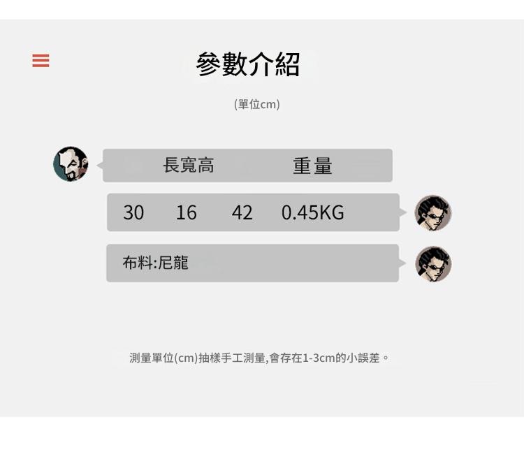 收納空間充足且分層合理,潮流設計兼具時尚感與辨識度,百搭屬性適配多場景穿搭,攜帶舒適且減輕負擔,材質耐用且適應多環境,性價比高且實用性強
