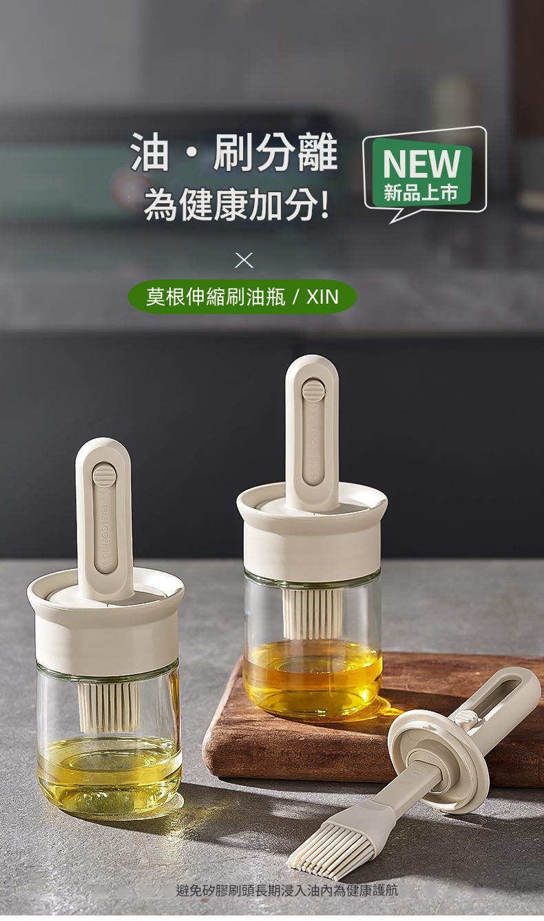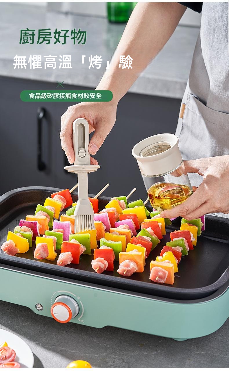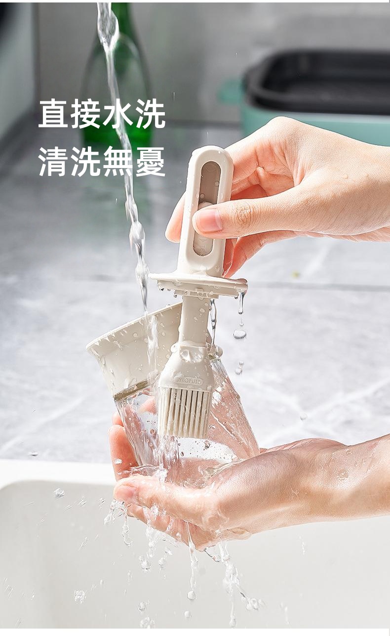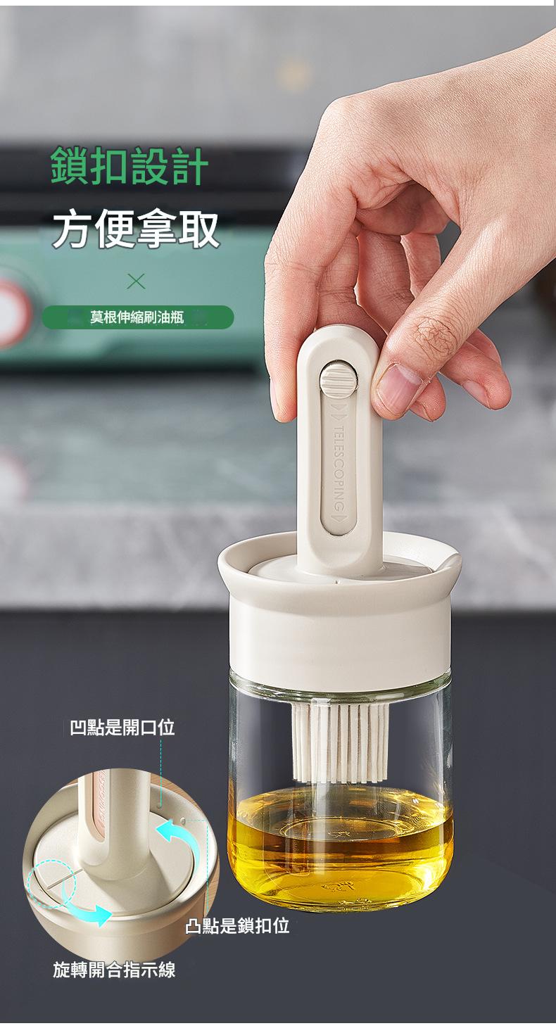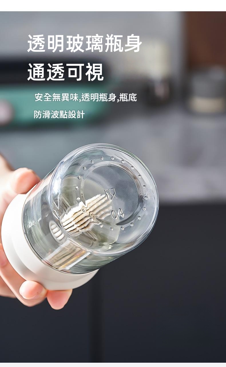 鎖扣設計便於拿取 6排刷頭刷油有力 刷蓋一體刷油有力 直接水洗清洗無憂 透明玻璃瓶身通透可視