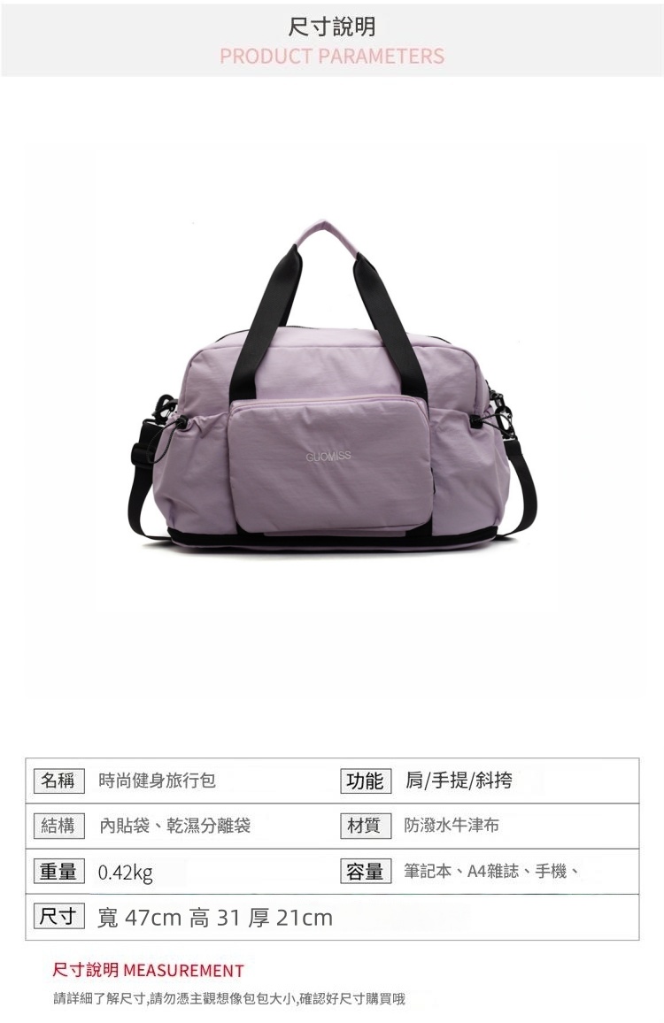 時尚實用 幹濕分離 多個隔層 多種背法 輕鬆適用各種場合