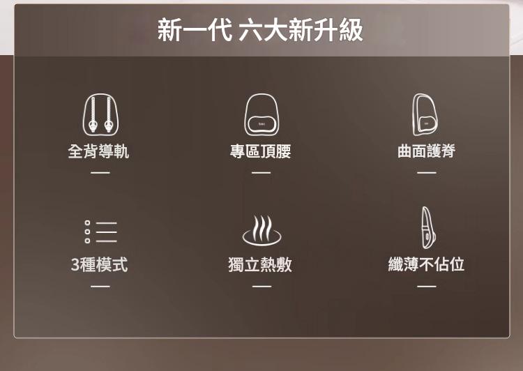 全背導軌 專區頂腰 曲面護脊 3種模式 獨立熱敷 纖薄不佔位