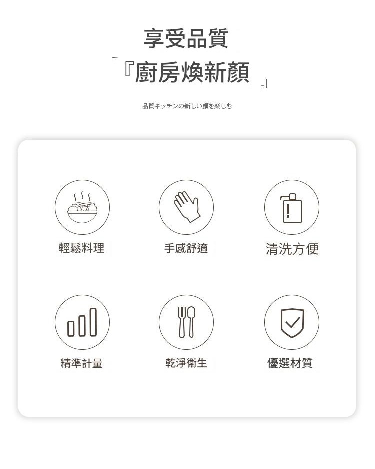 輕鬆料理 手感舒適 清洗方便 精準計量 乾淨衛生 優選材質