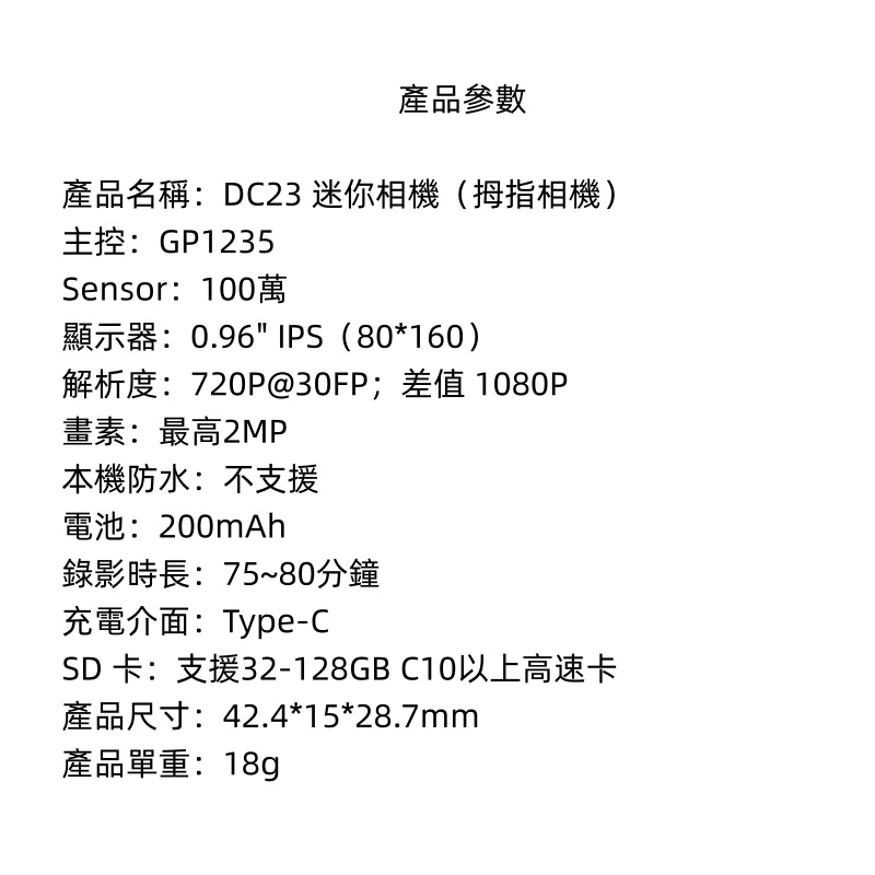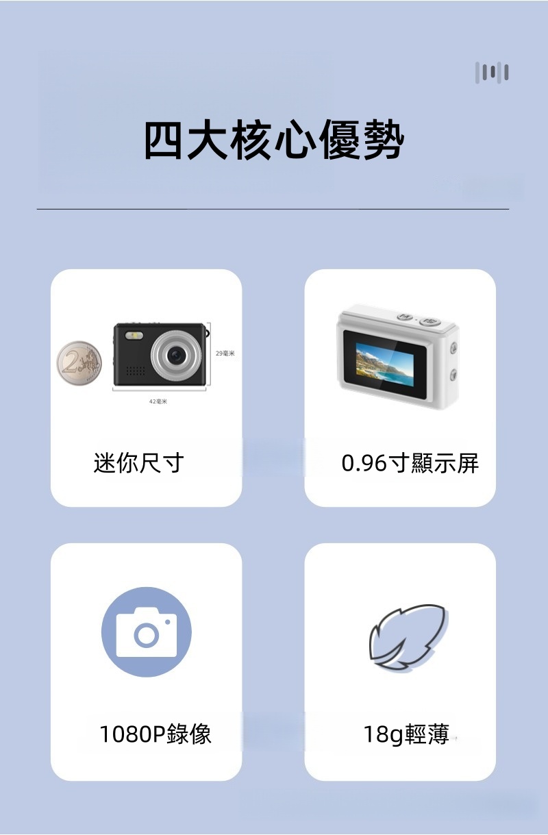 迷你尺寸 0.96寸顯示屏 1080P錄像 18g輕薄