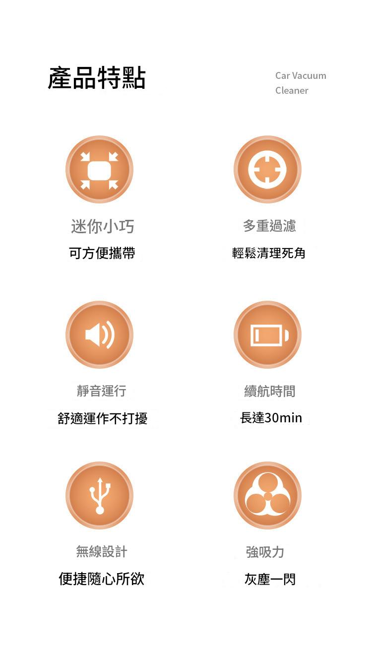 迷你小巧 多重過濾 靜音運行 續航時間長 無線設計 強吸力