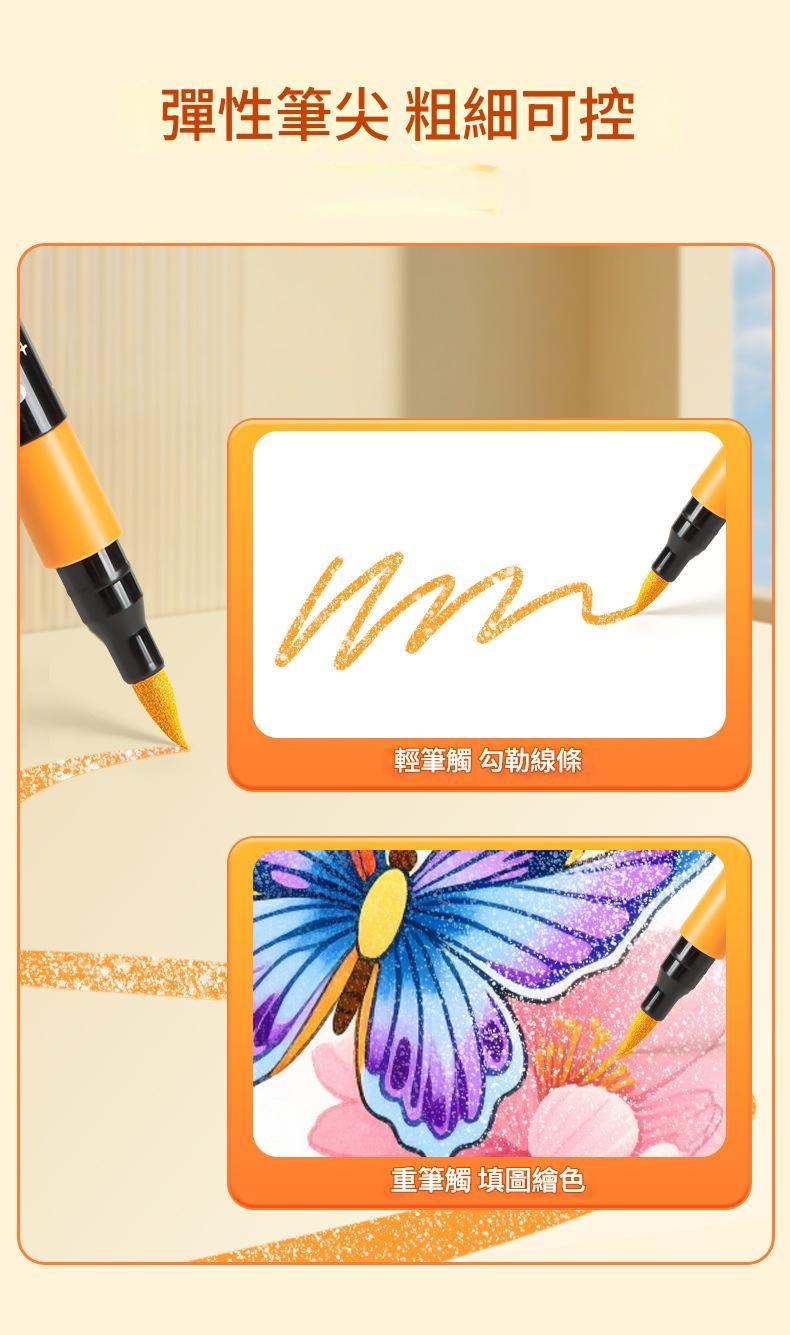 拔帽即用 安全無味 顏色鮮豔 色彩覆蓋 金屬爆閃 書寫順滑 不易透紙