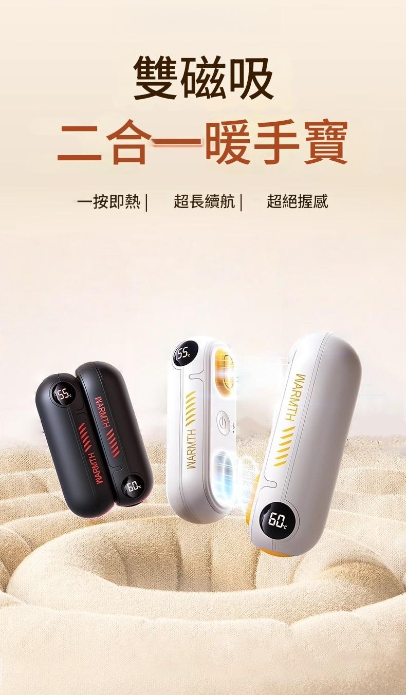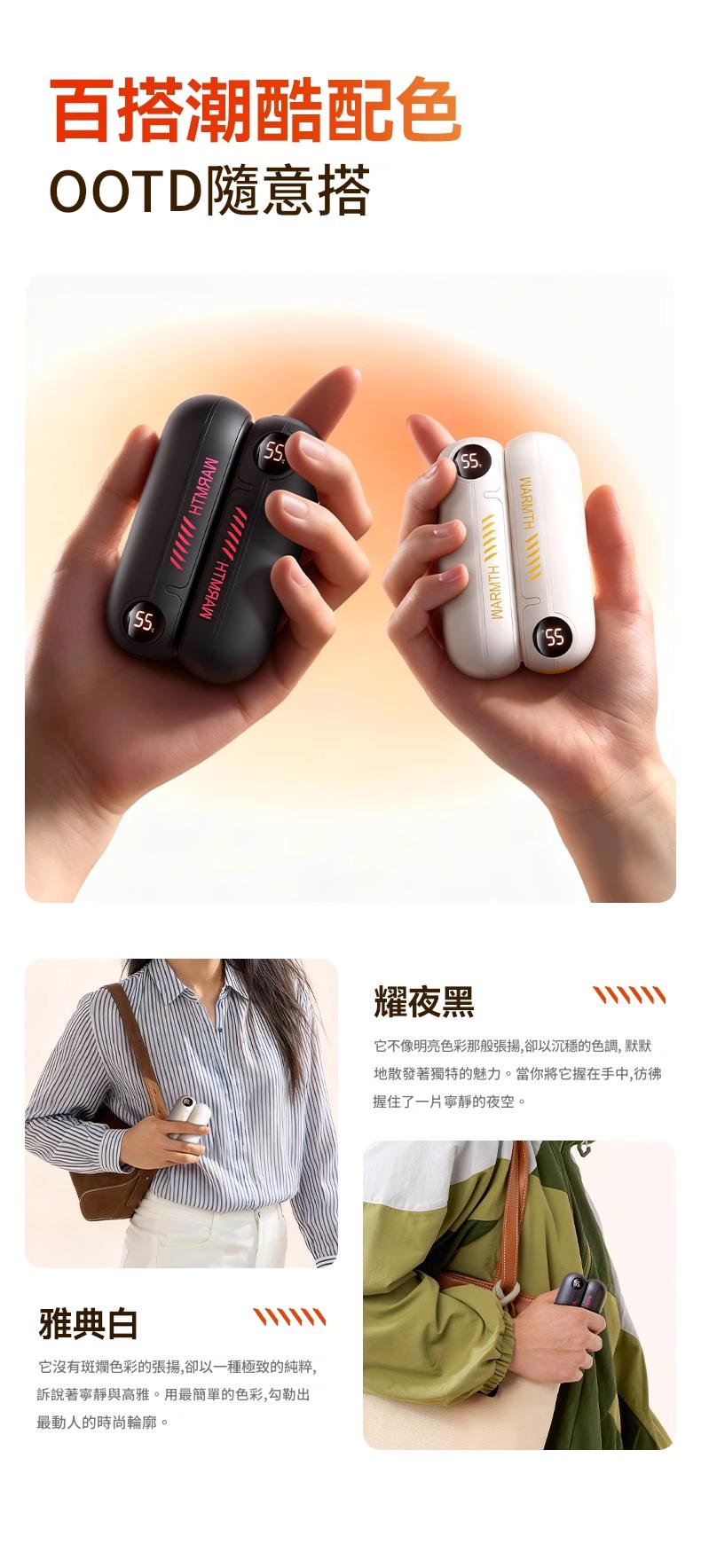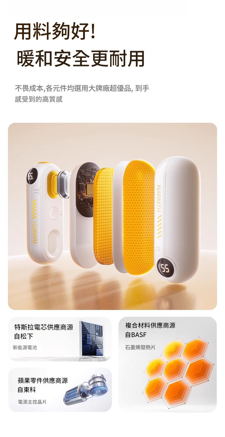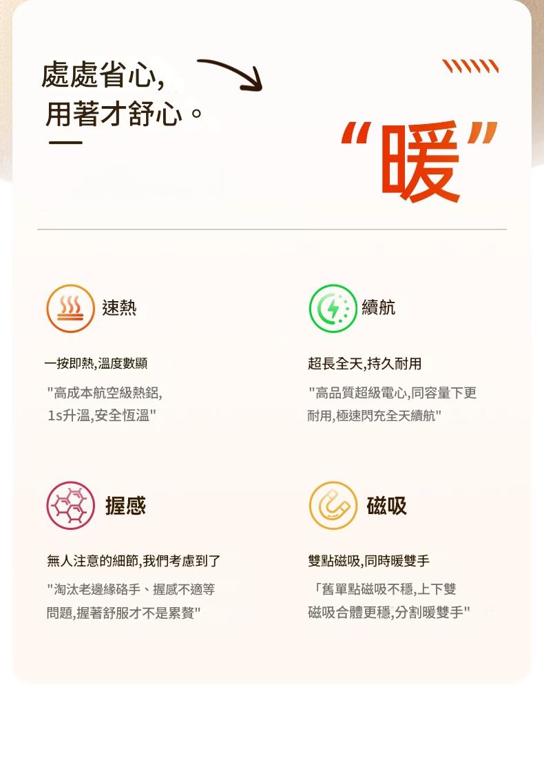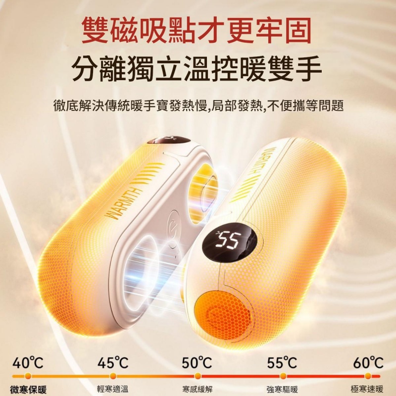1秒速熱 60°恆溫發熱 雙手皆暖 三檔控溫 電量溫度數顯