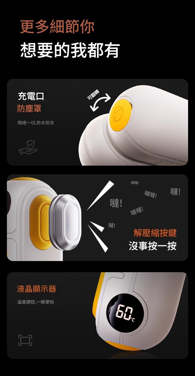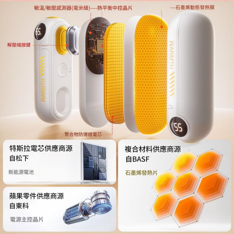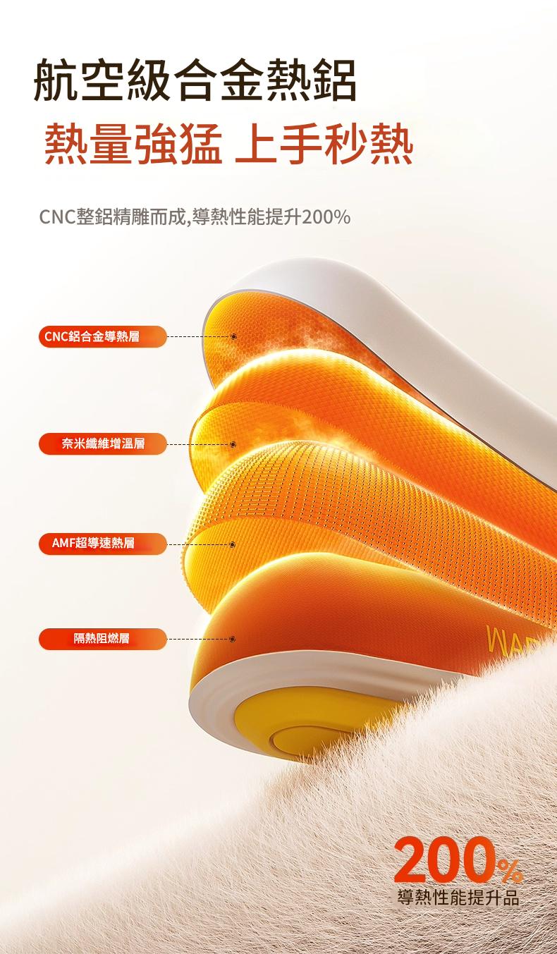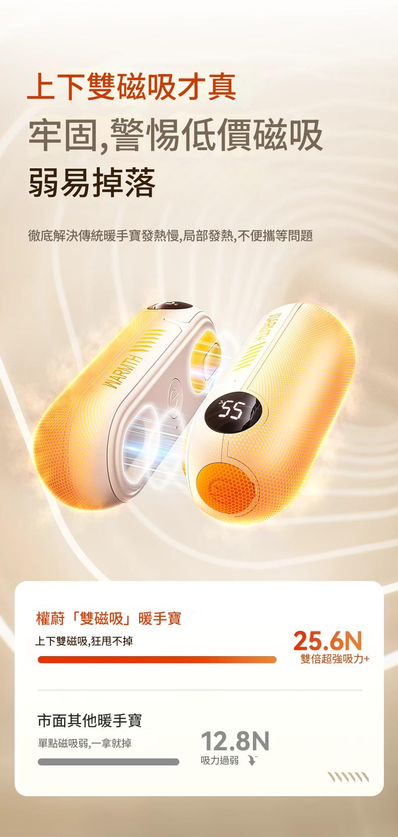 1秒速熱 60°恆溫發熱 雙手皆暖 三檔控溫 電量溫度數顯