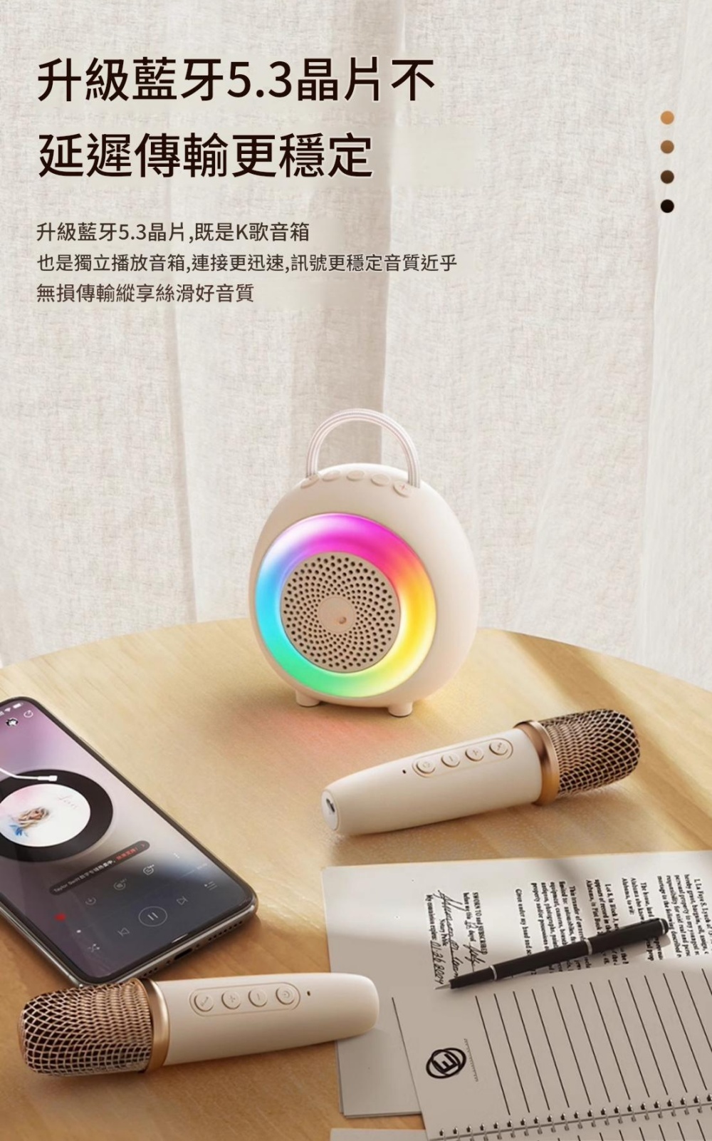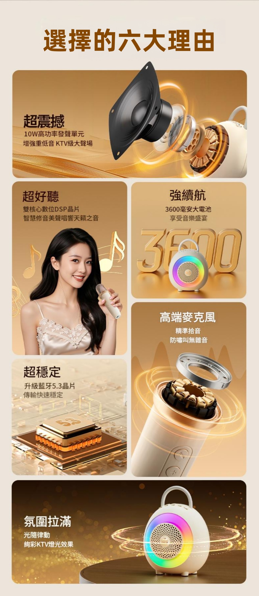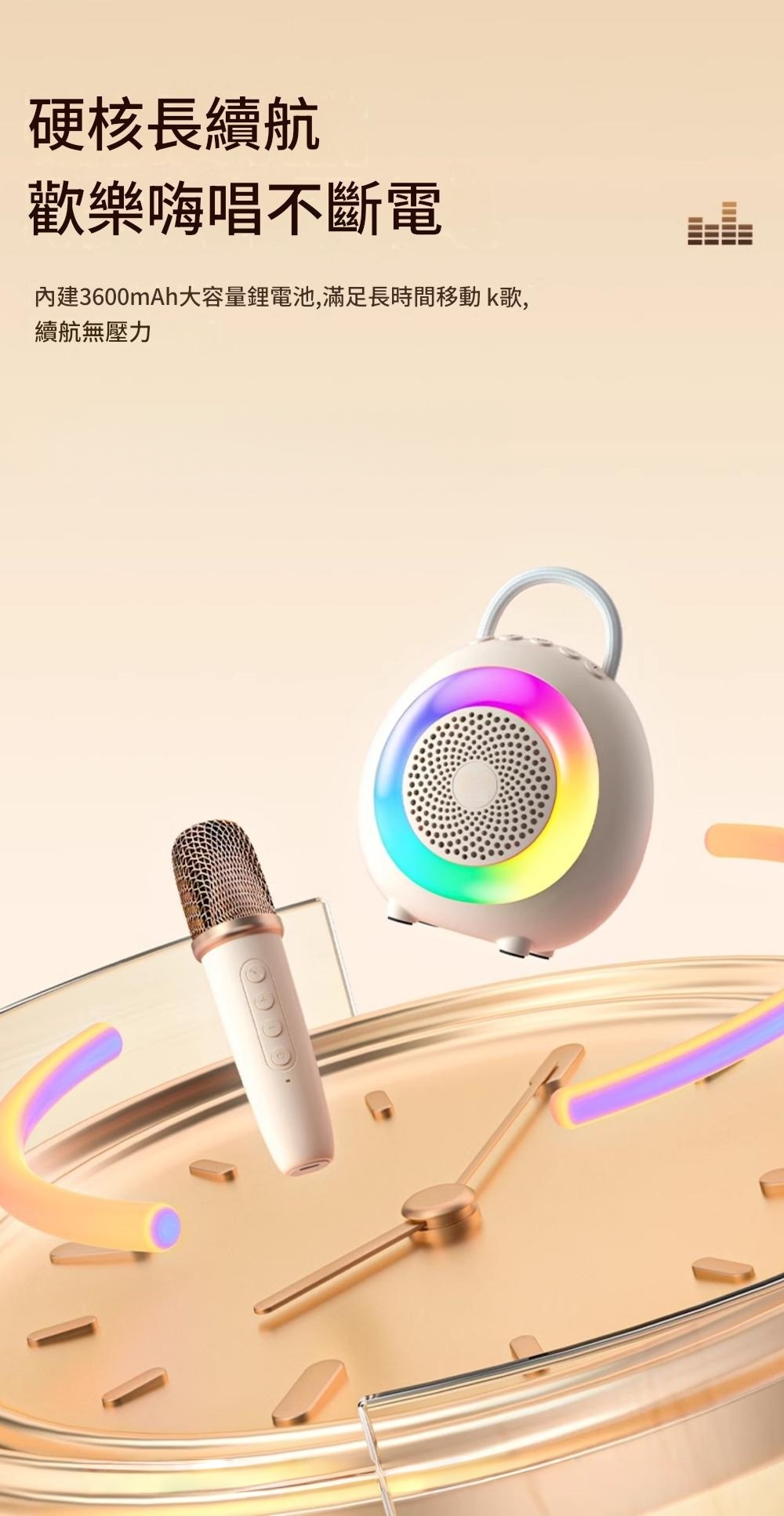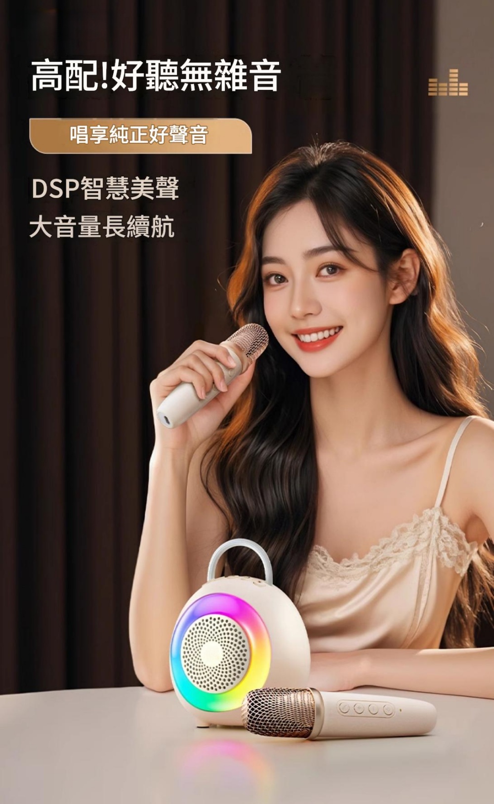 超震撼立体音 雙核心數碼DSP晶片 強續航 高端麥克風精準拾音 升級藍牙5.3晶片 絢彩KTV燈光效果