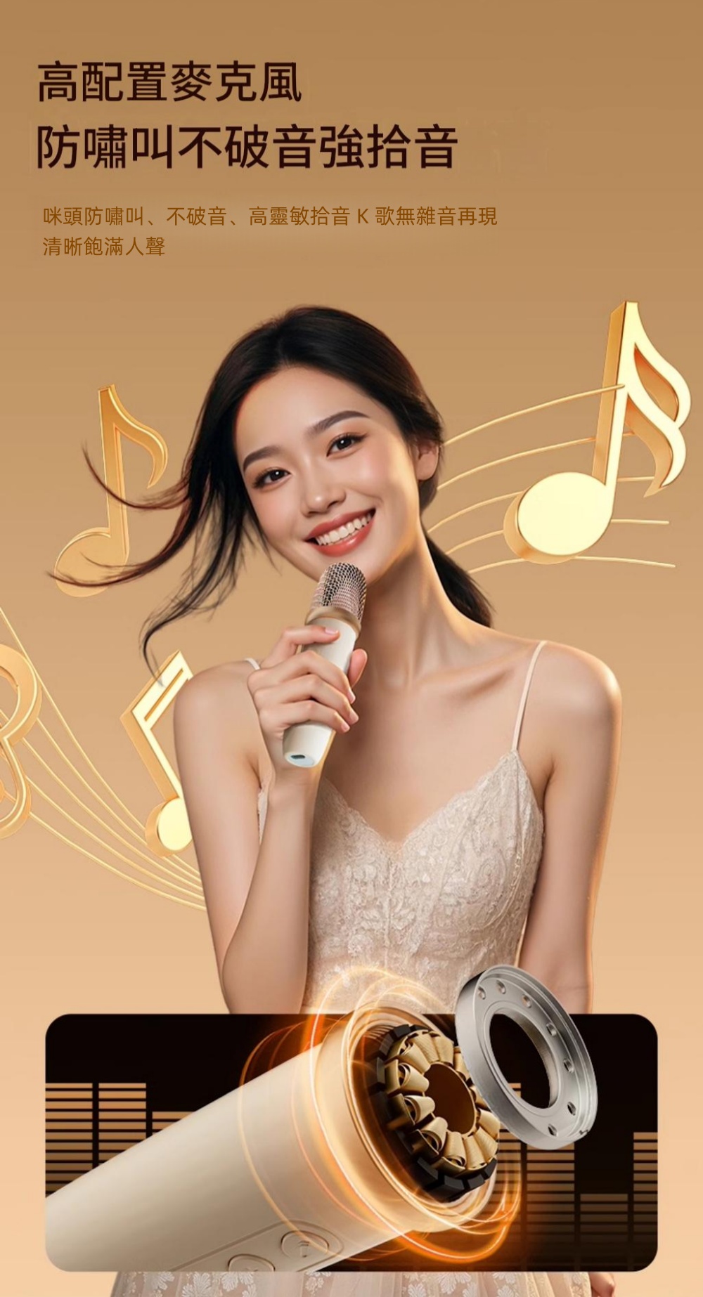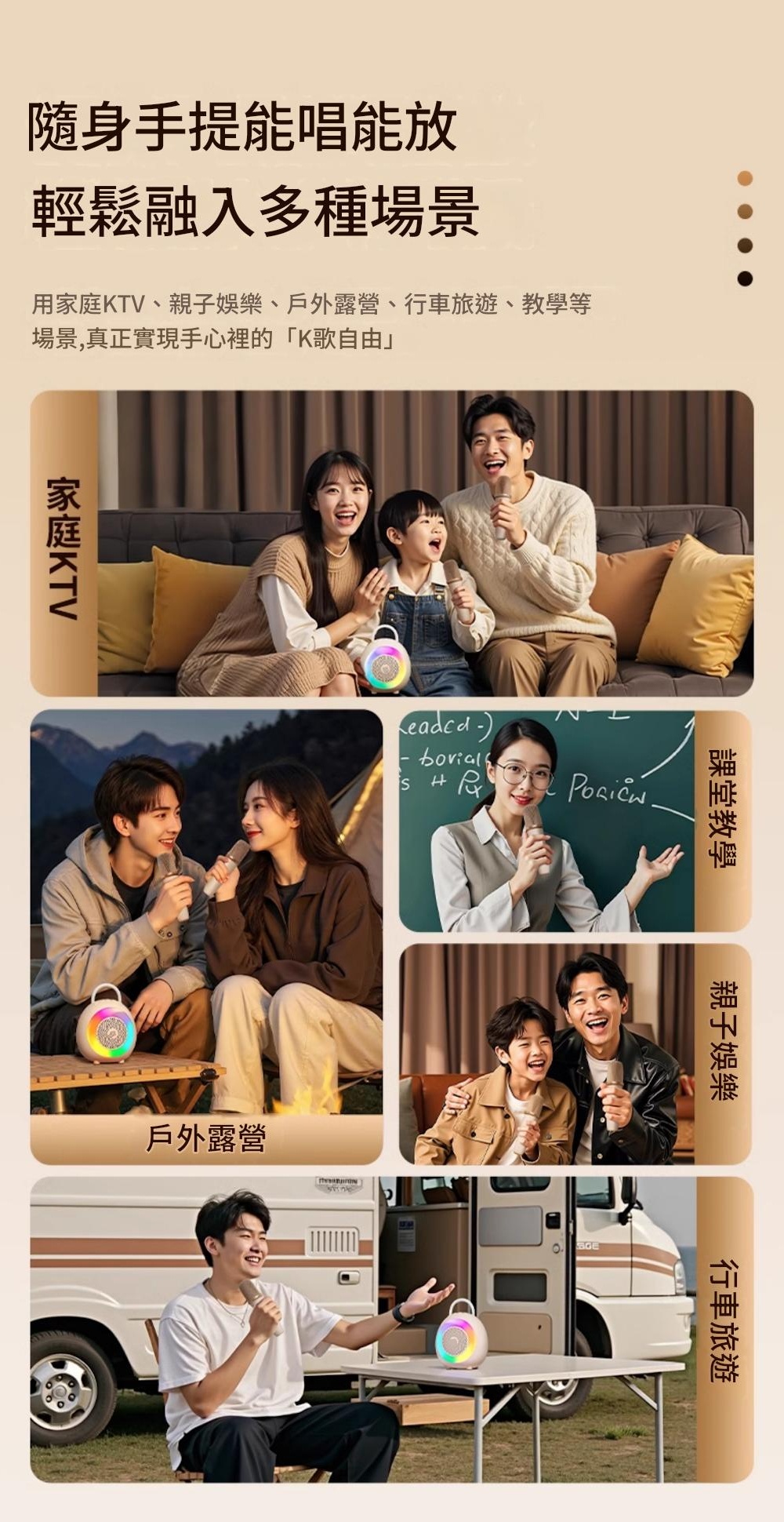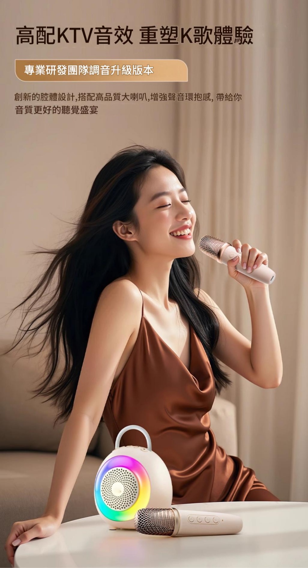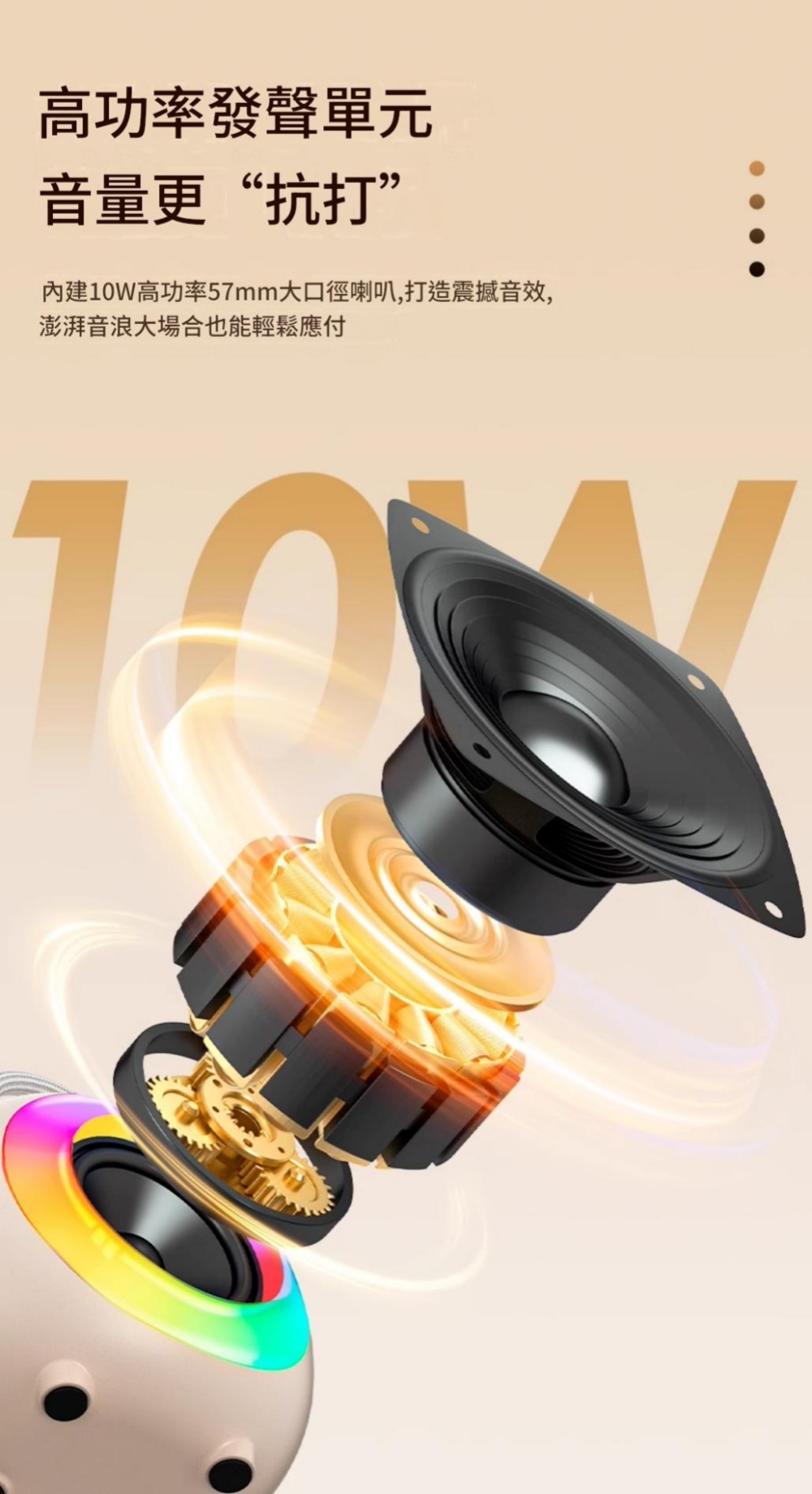 超震撼立体音 雙核心數碼DSP晶片 強續航 高端麥克風精準拾音 升級藍牙5.3晶片 絢彩KTV燈光效果