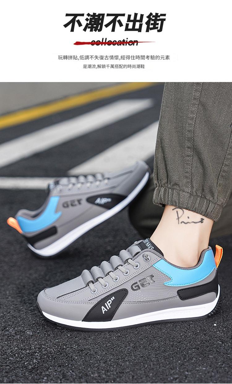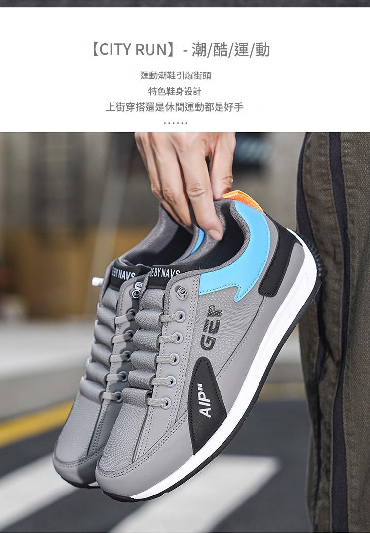 優質防水皮面厚底跑步男鞋