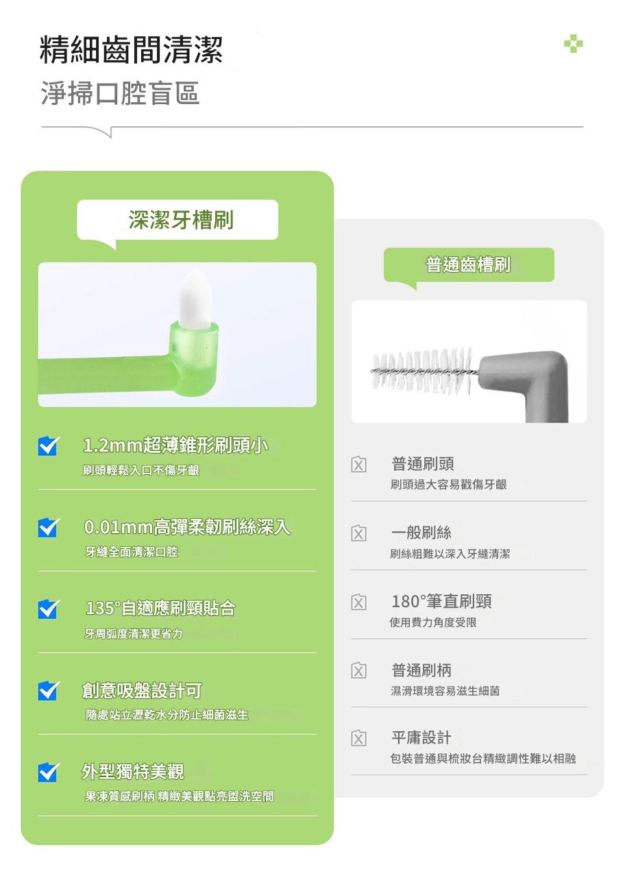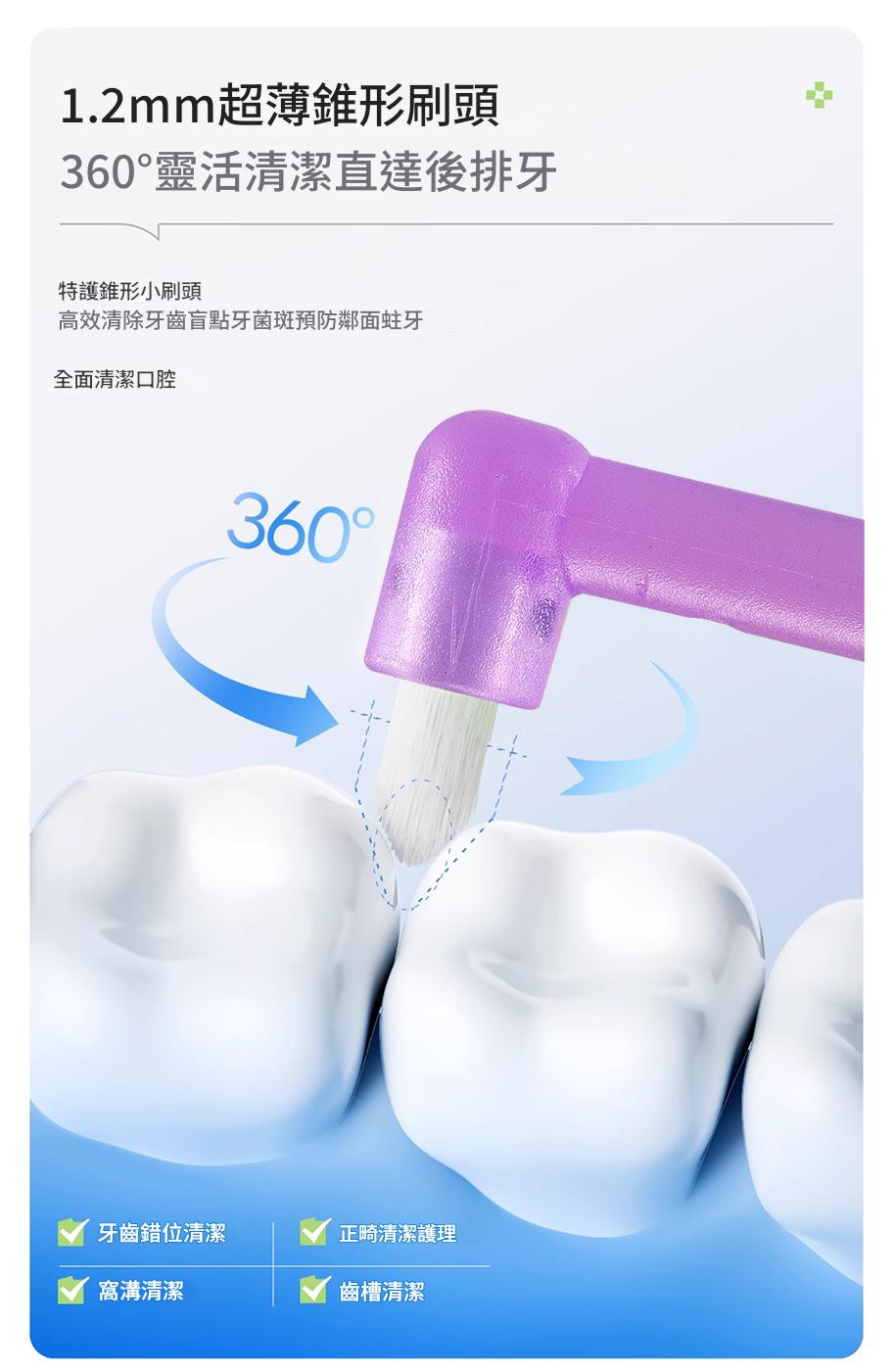 深潔牙槽刷 小巧靈活 深潔齒縫 1.2ᵐᵐ超薄刷頭 專攻口腔死角