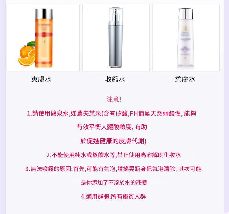 大噴霧 霧濛細緻 快速吸收 皮膚測試 智慧警示 精準計量 38ML大水箱