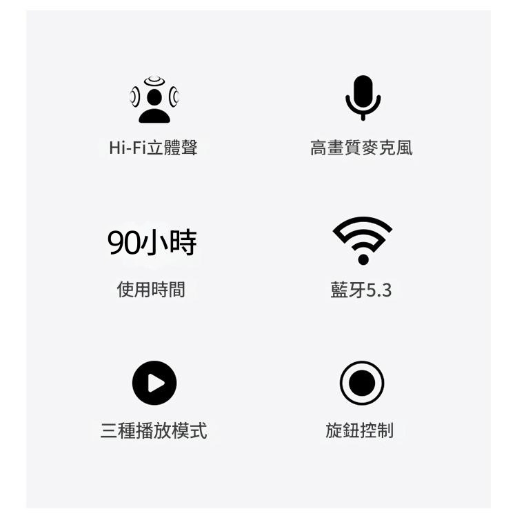 Hi-Fi立體音 高清麥克風 90小時使用時間 藍牙5.3 三種播放模式旋鈕控制