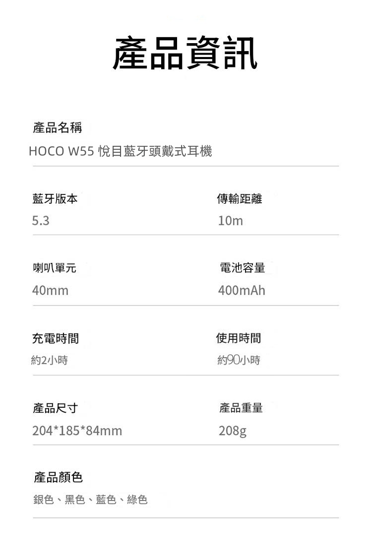 HOCO W55 悅目藍牙頭戴式耳機 耳筒