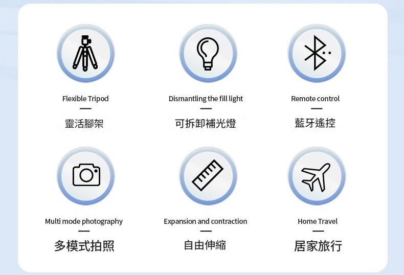 靈活腳架 可拆卸補光燈 藍牙遙控 多模式拍照 自由伸縮 居家旅行