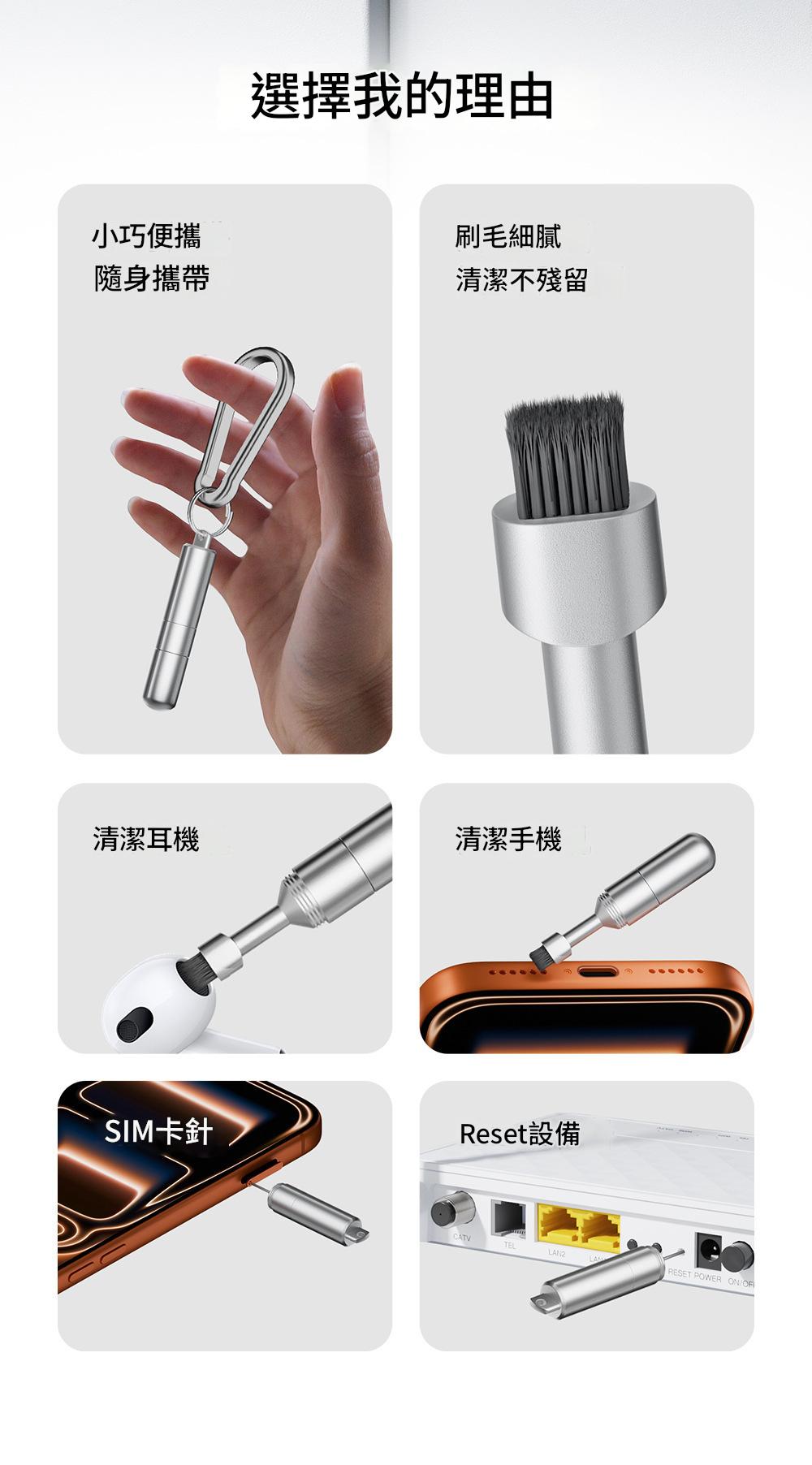 雙頭設計 隨時切換 小巧便攜 刷毛細膩清潔不殘留 合金鑄造