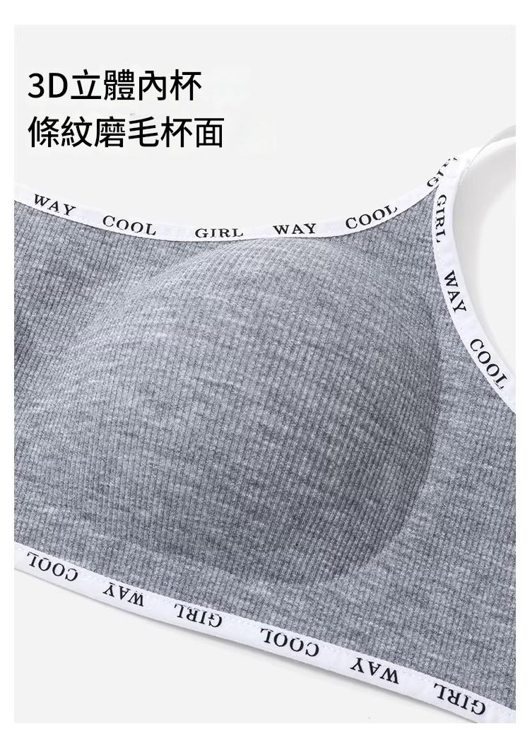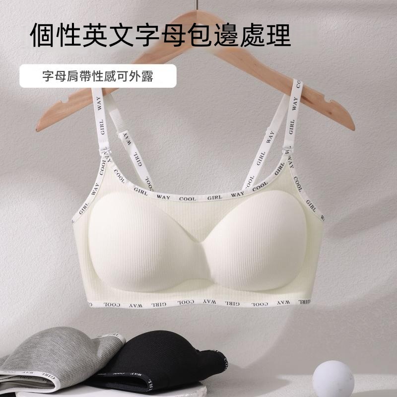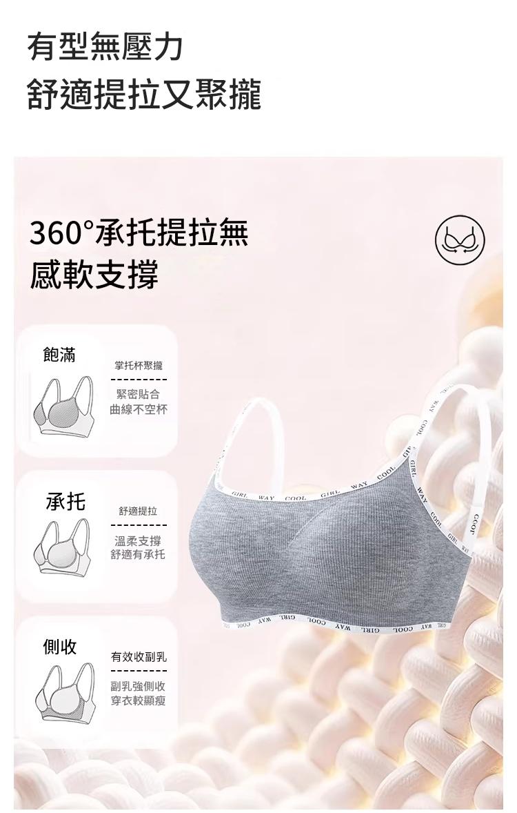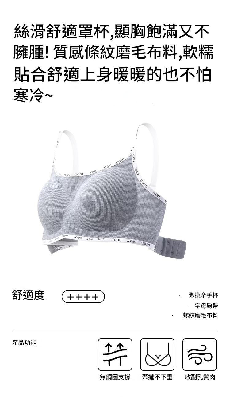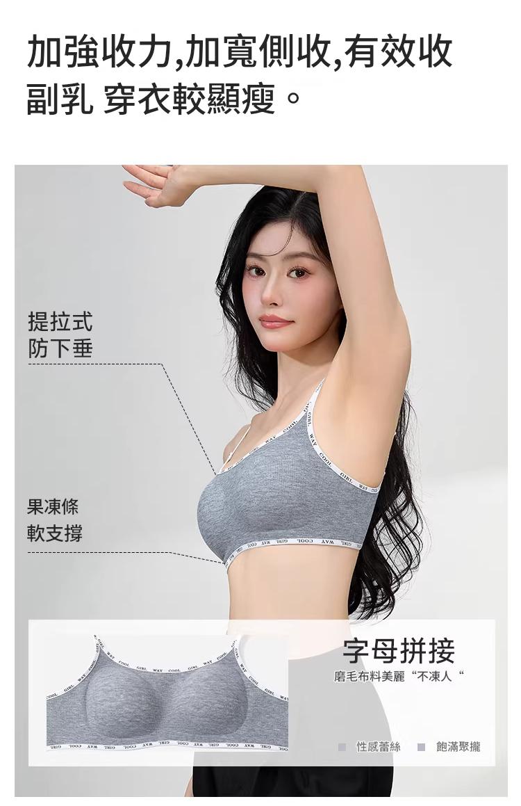 螺紋磨毛面料 無鋼圈支撐 聚攏不下垂 聚攏防走光 收副乳贅肉 字母肩帶