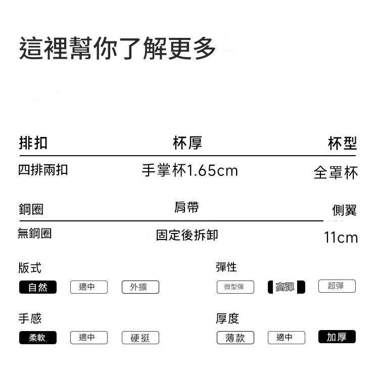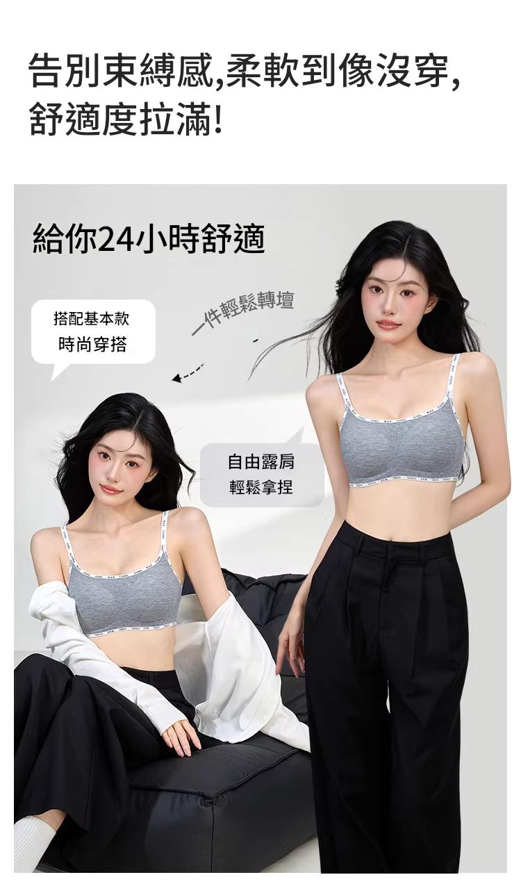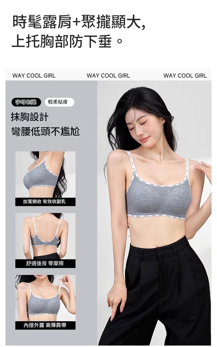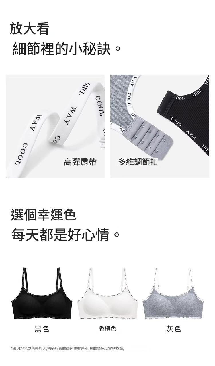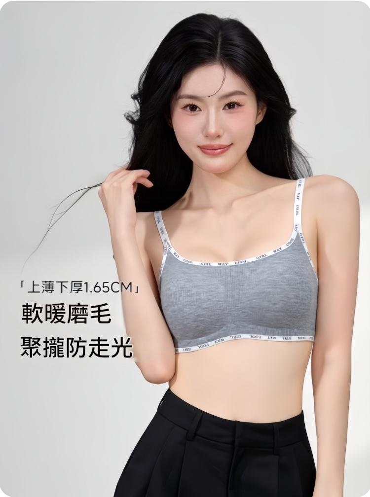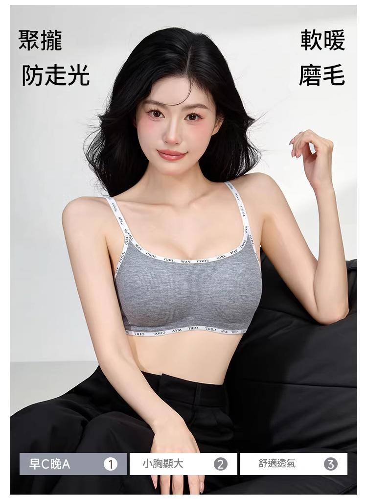 螺紋磨毛面料 無鋼圈支撐 聚攏不下垂 聚攏防走光 收副乳贅肉 字母肩帶