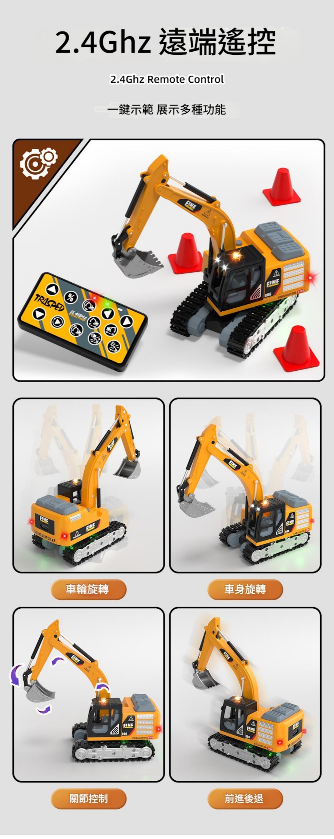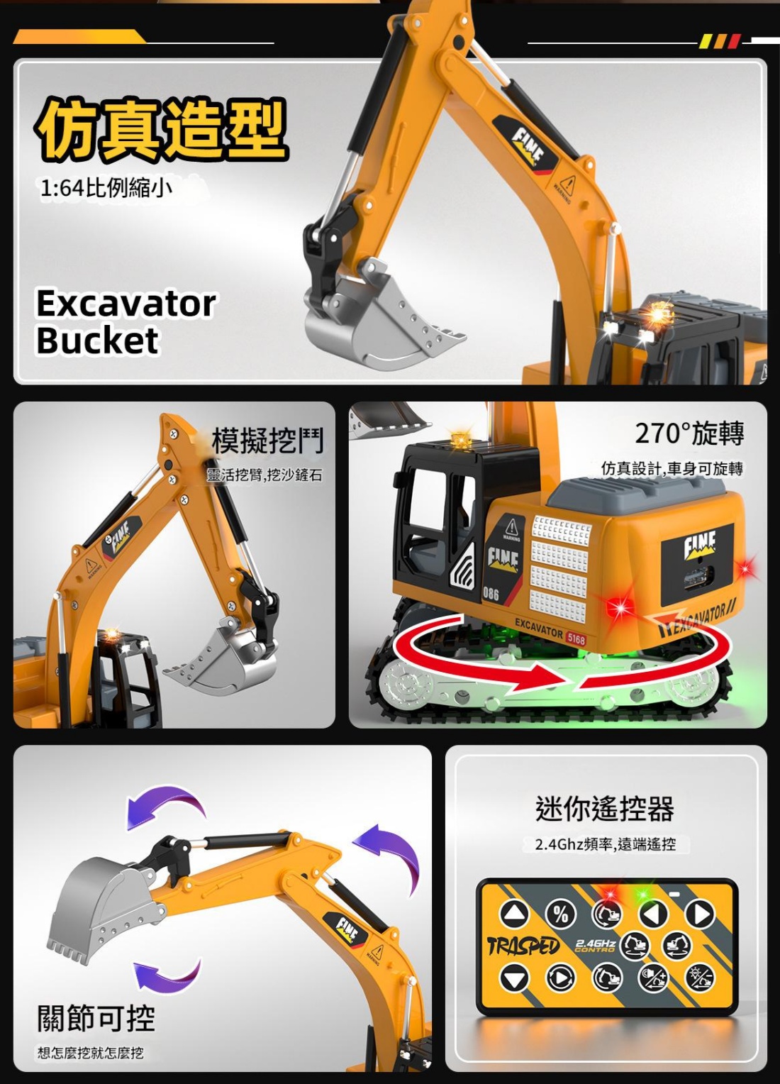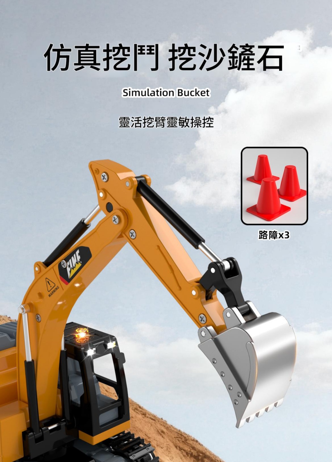 合金挖斗 270°旋轉 精密齒輪 仿真聲光 關節可動 一鍵啟動 2.4G遙控