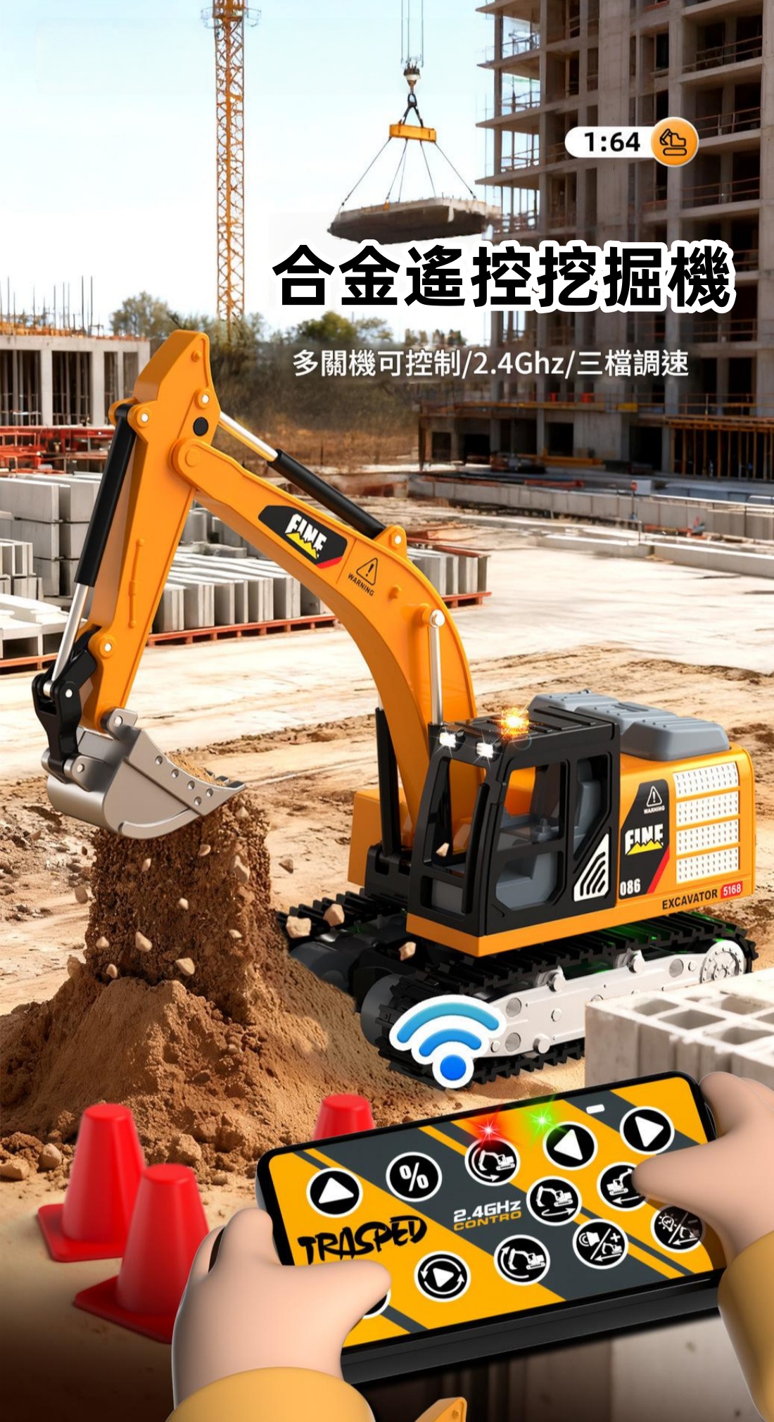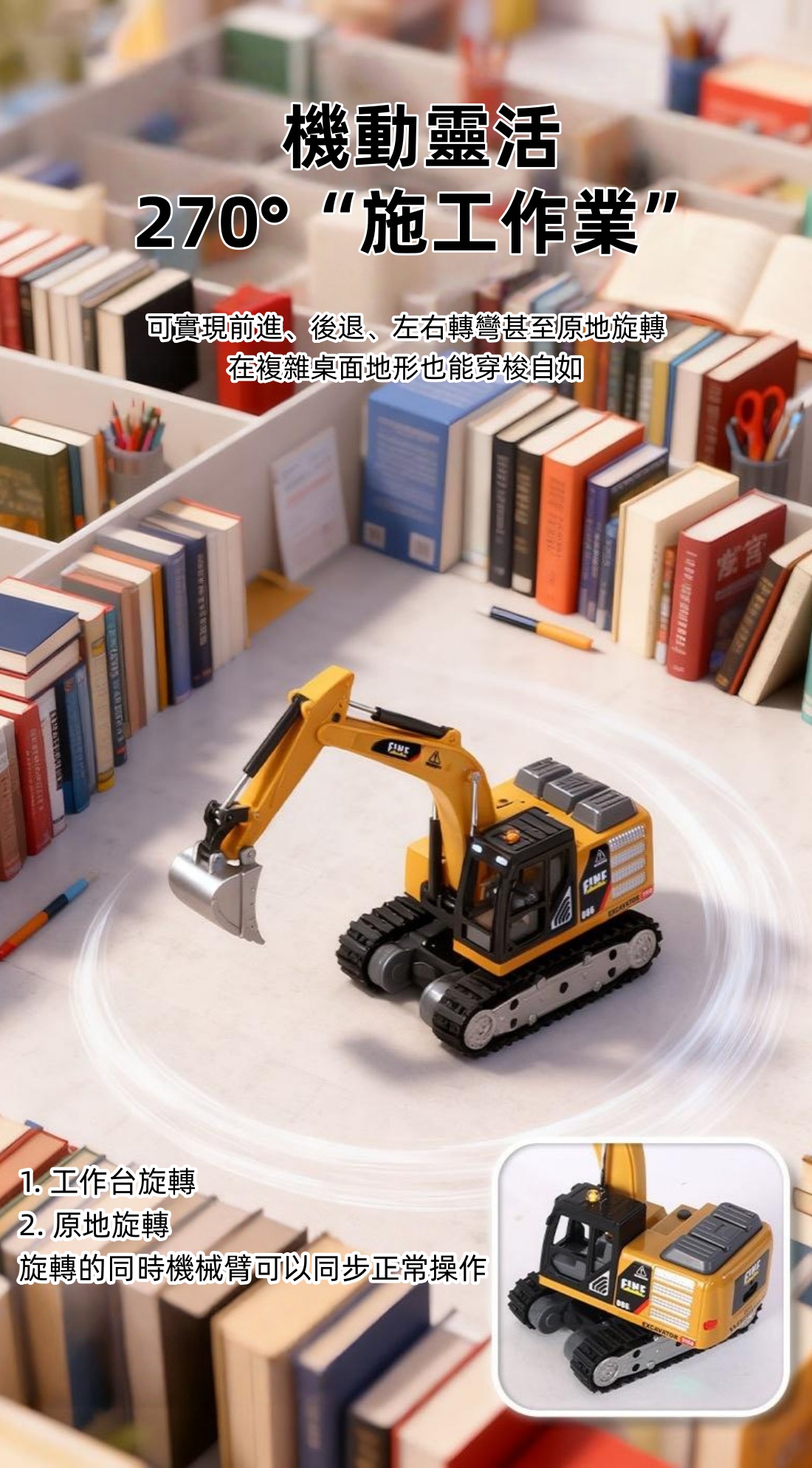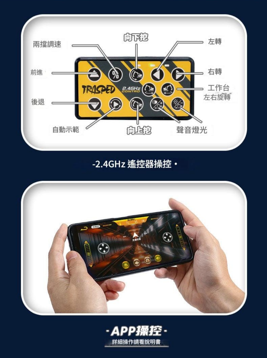合金挖斗 270°旋轉 精密齒輪 仿真聲光 關節可動 一鍵啟動 2.4G遙控
