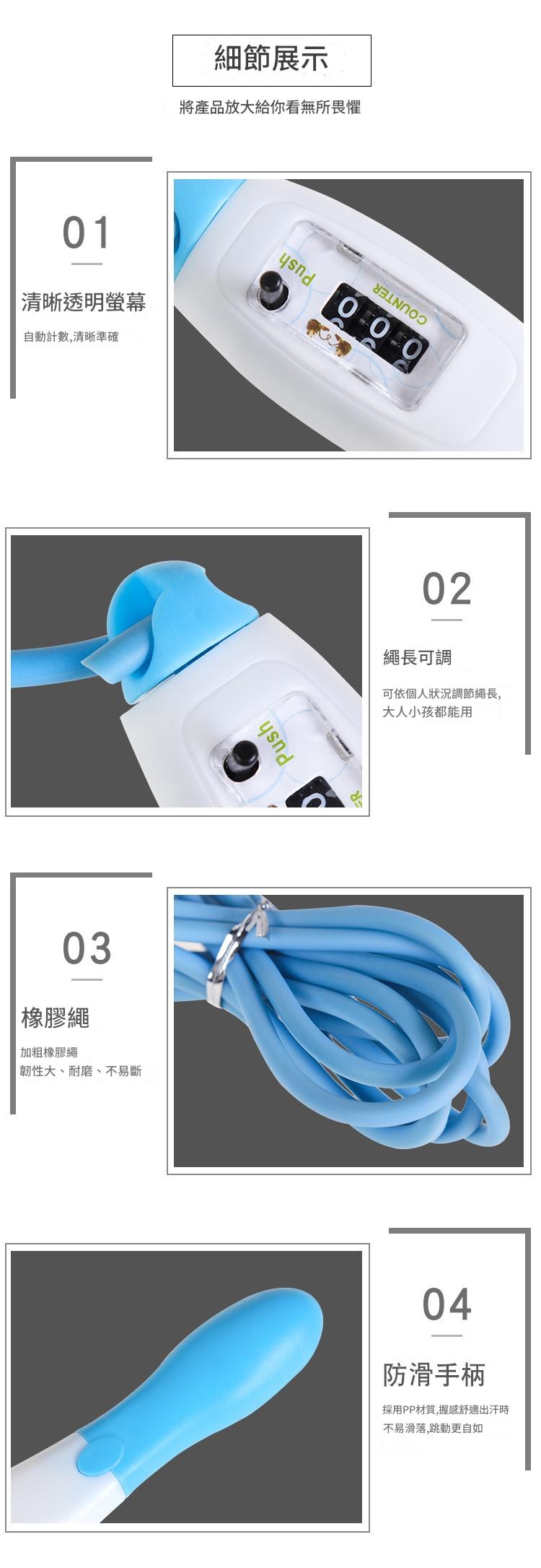 機械計數 快速燃脂 舒適把握 360°順暢旋轉 長度可調節 時尚配色