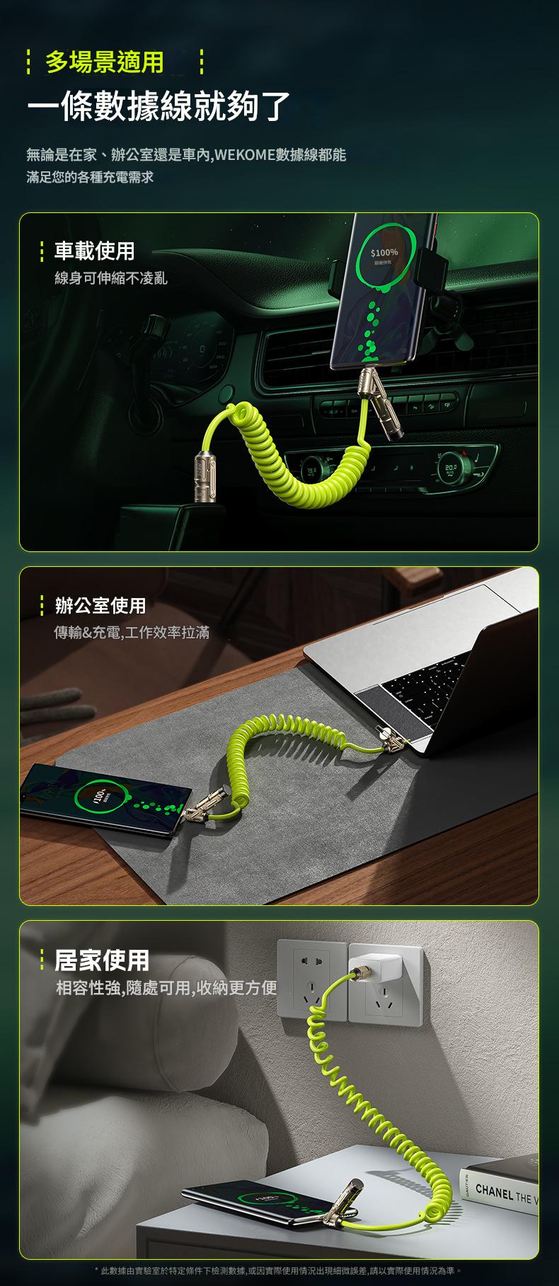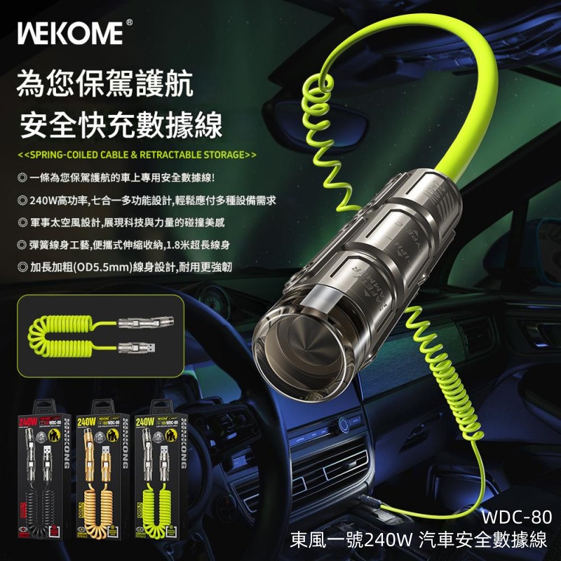 WEKOME 240W三合一伸縮彈簧數據線 WDC-80 充電線/傳輸線