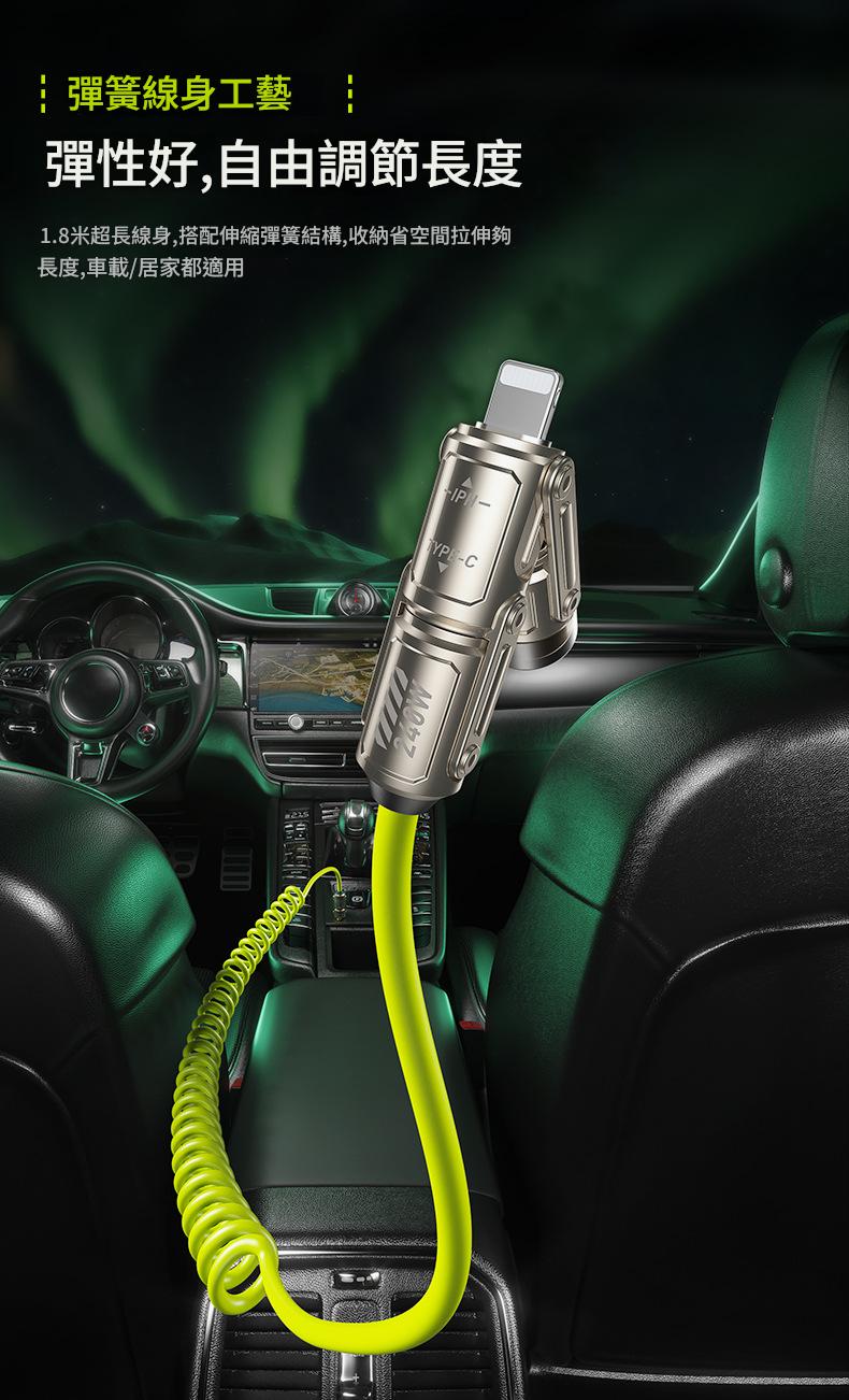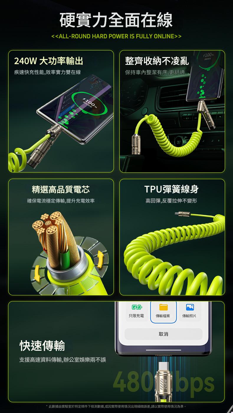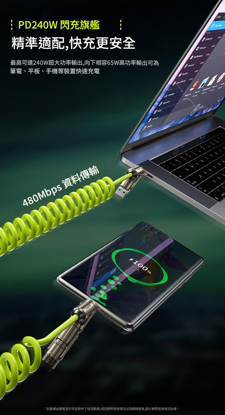 240W大功率輸出 整齊收納不凌亂 精選高品質電芯 TPU彈簧線身 快速傳輸
