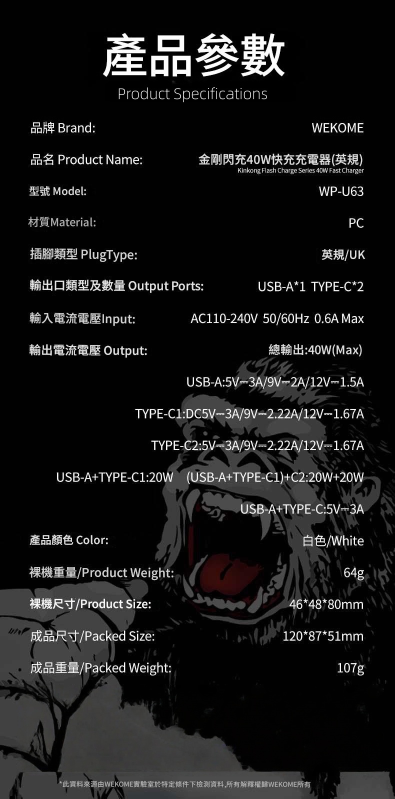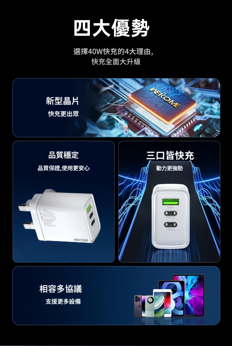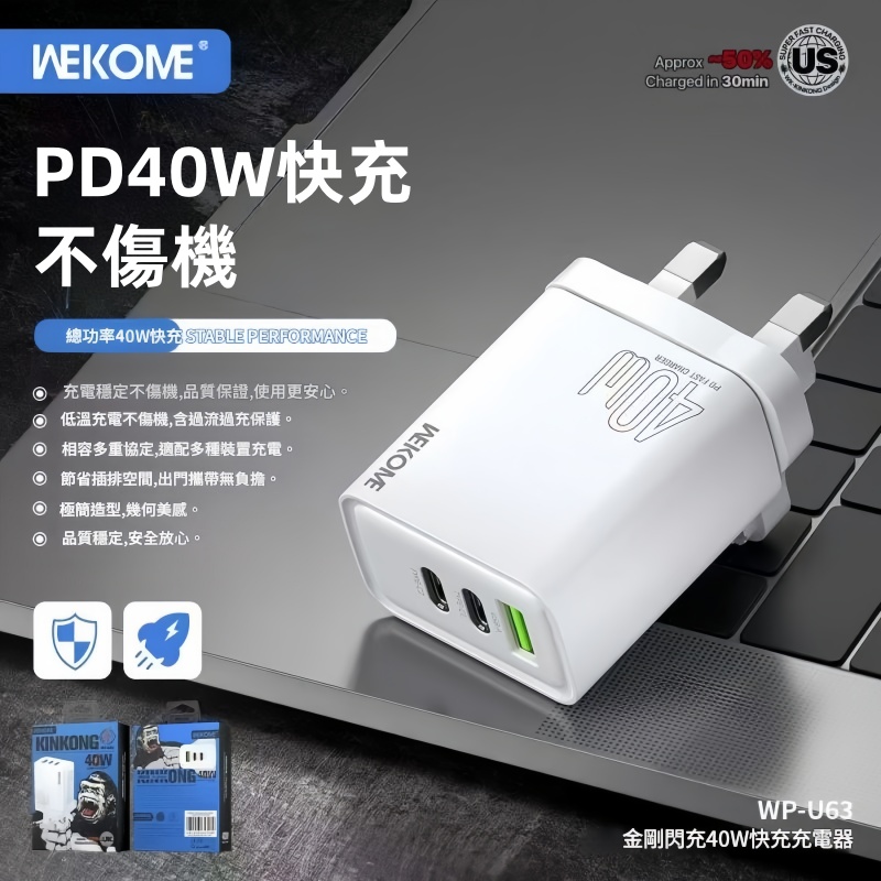WEKOME 金剛閃充系列40W 快充充電器 WP-U63 充電器/火牛
