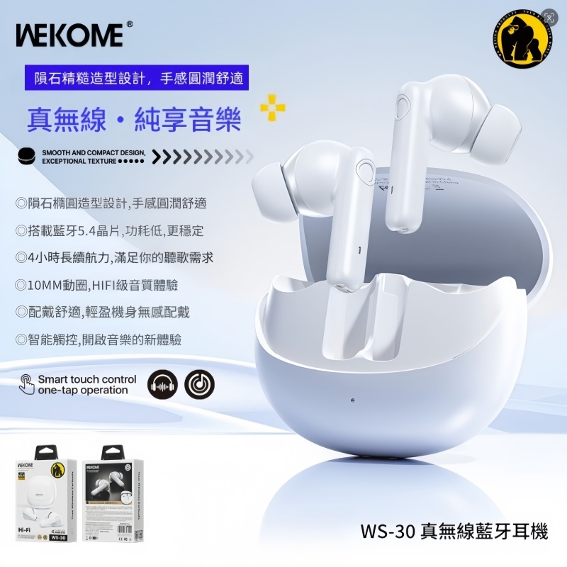 隕石橢圓造型設計 藍牙5.4 4小時長續航力 HIFI級音質體驗 配戴舒適 智能觸控