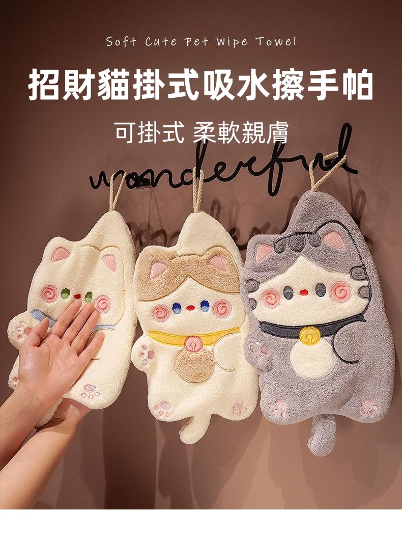招財貓掛式吸水擦手帕 手巾仔/抹手巾