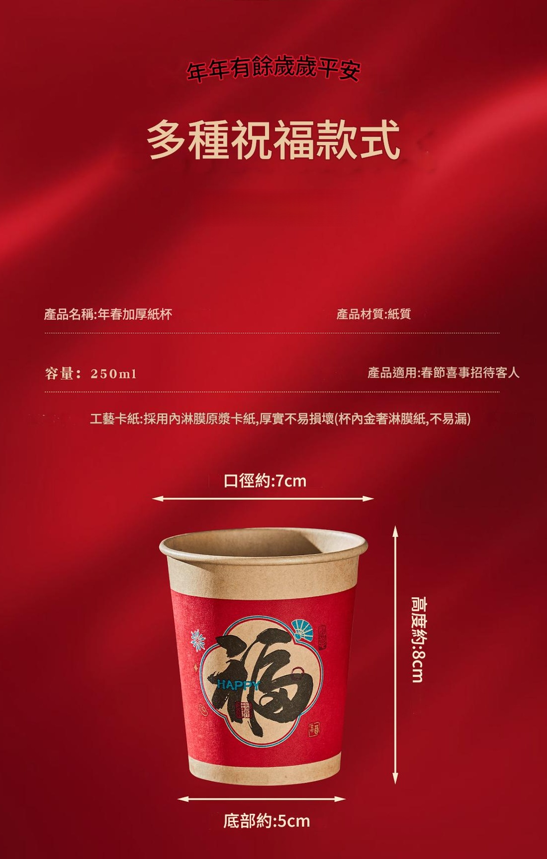 新年一次性加厚紙杯 紙杯仔/即棄紙杯