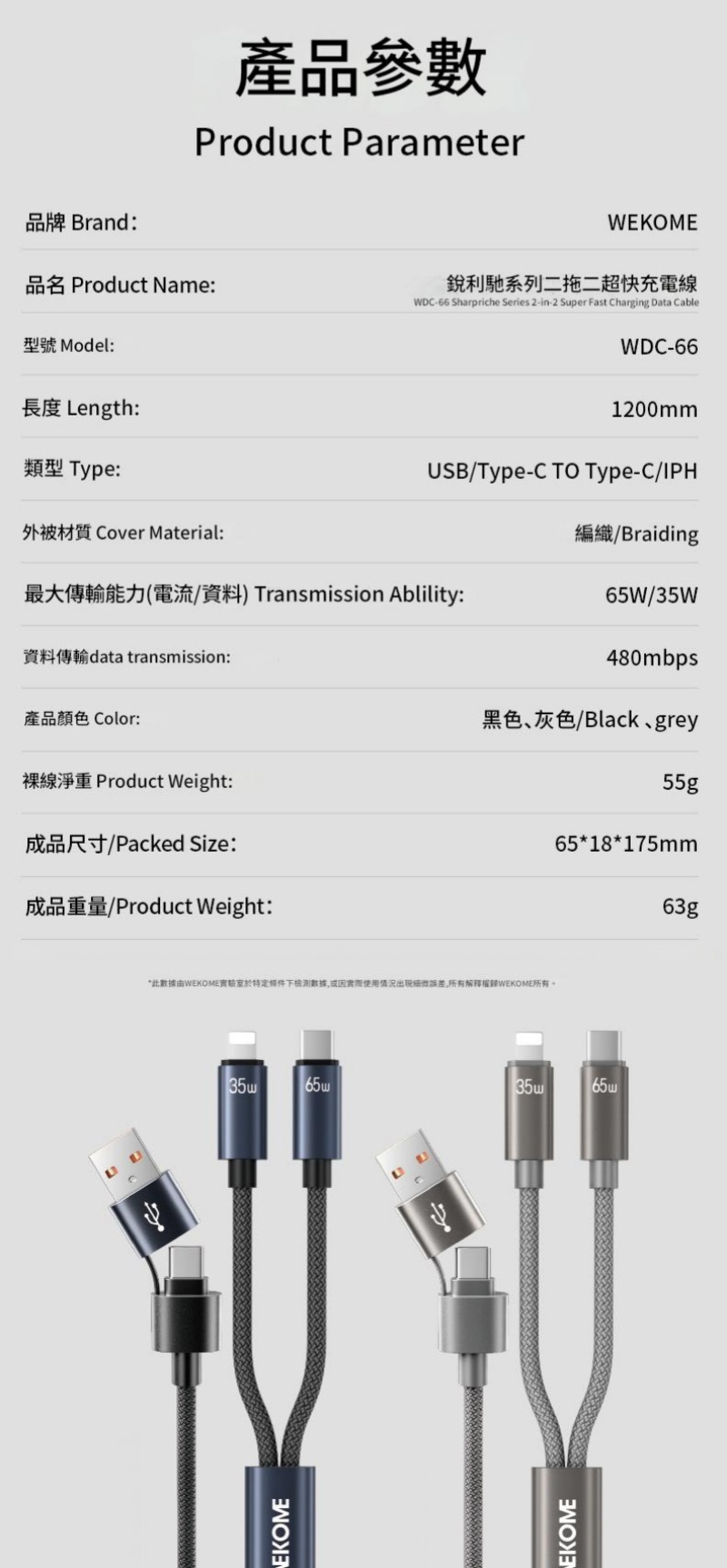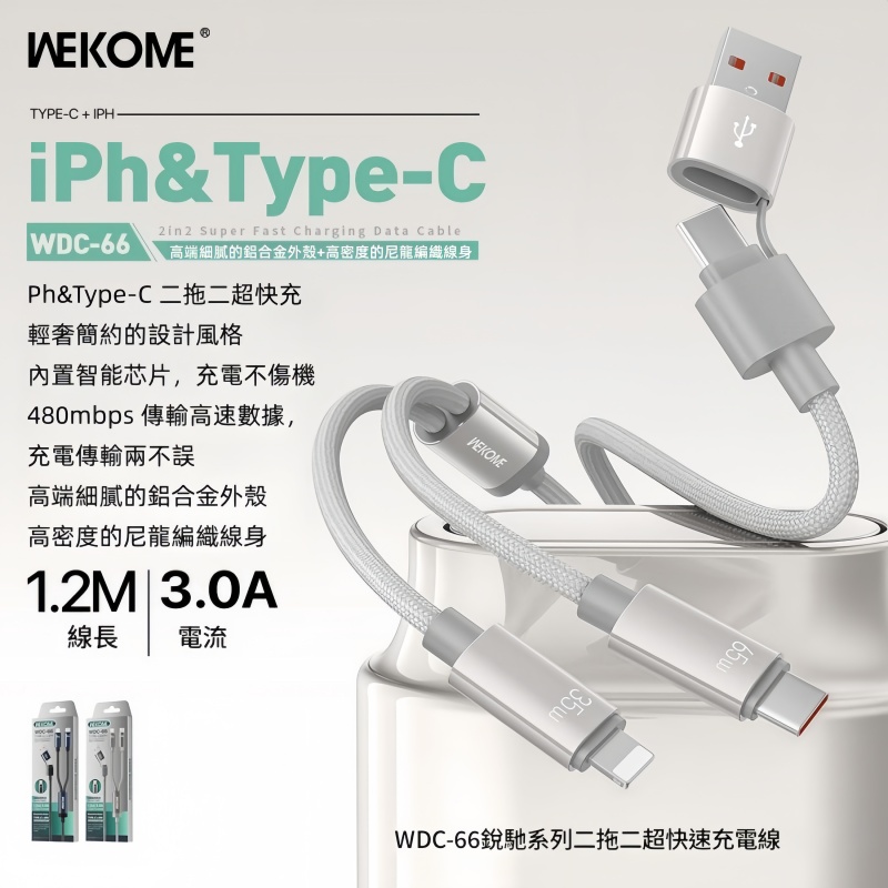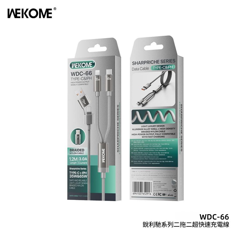 WEKOME 機用二代四合-65W快充磁吸數據線 WDC-26 1.2M(黃色) WDC-25 充電線/傳輸線