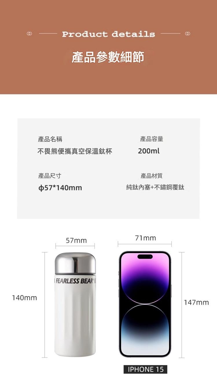 不畏熊便攜真空保溫鈦杯 暖水杯/杯