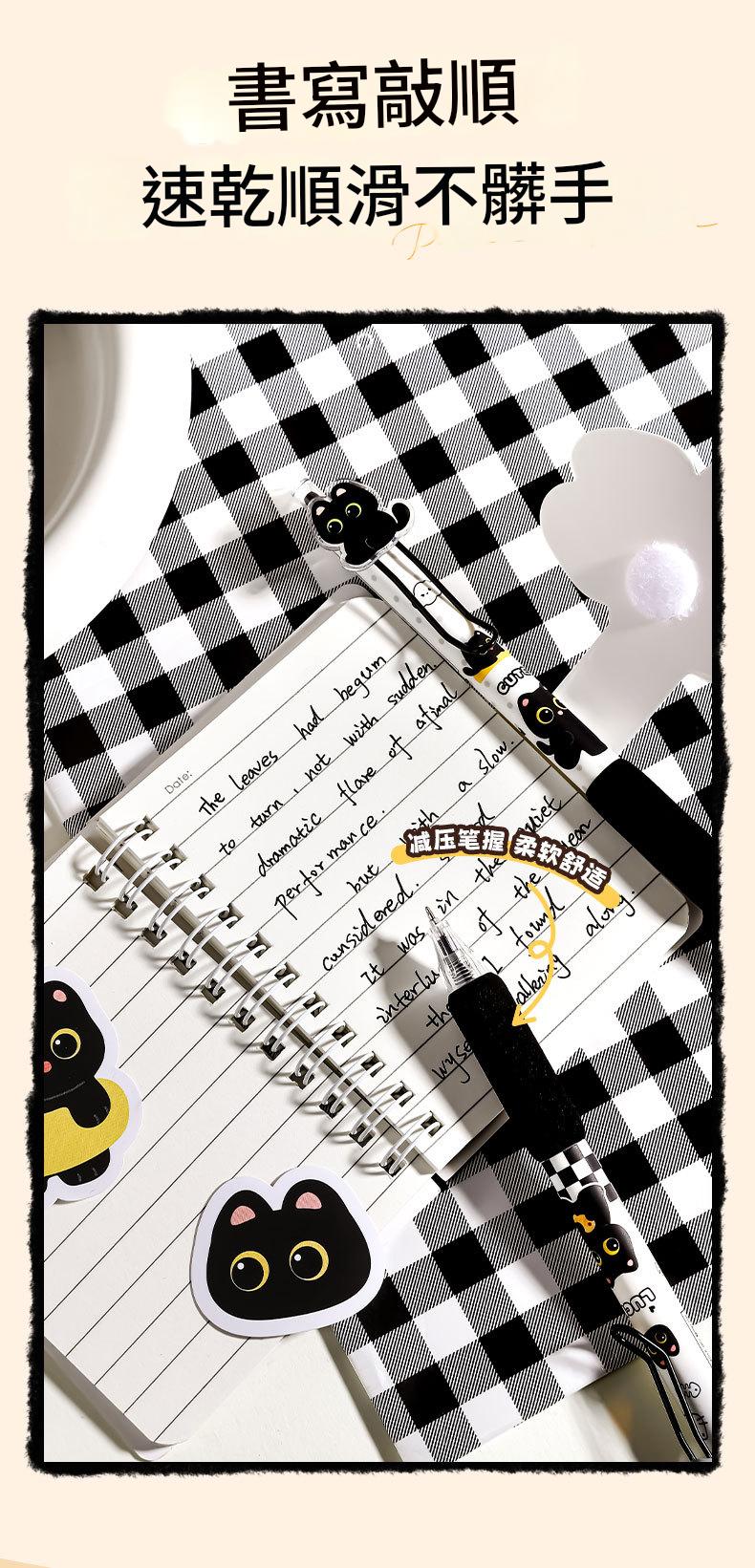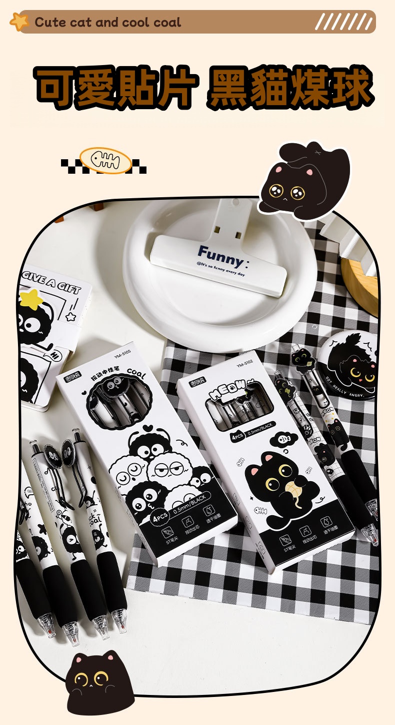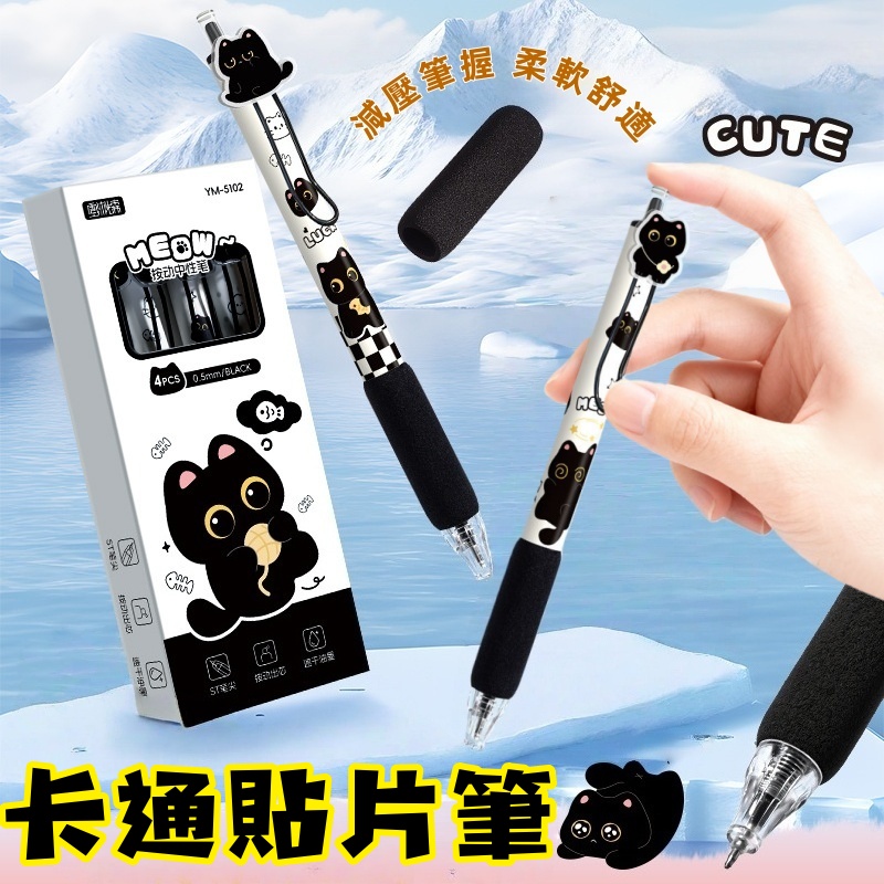 喵嗚炭黑色中性筆(4支裝) 啫喱筆/水筆