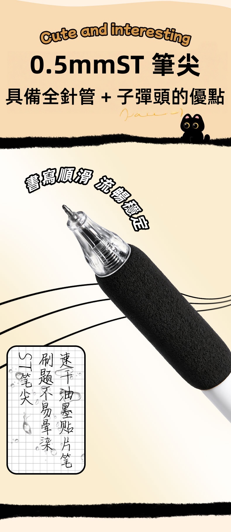 ST高精密笔尖 速干油墨 刷题不脏手 笔夹设计 携带方便