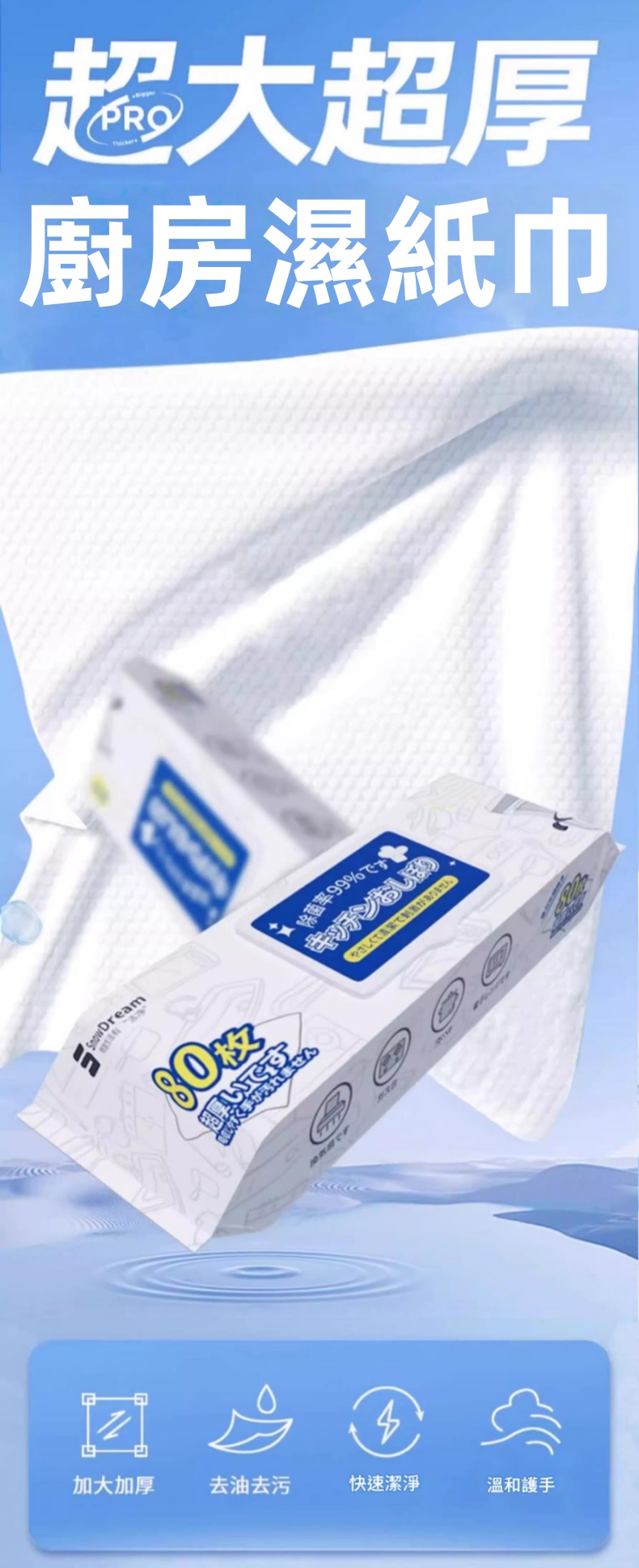 強力廚房清潔濕巾80抽 廚房濕巾/濕紙