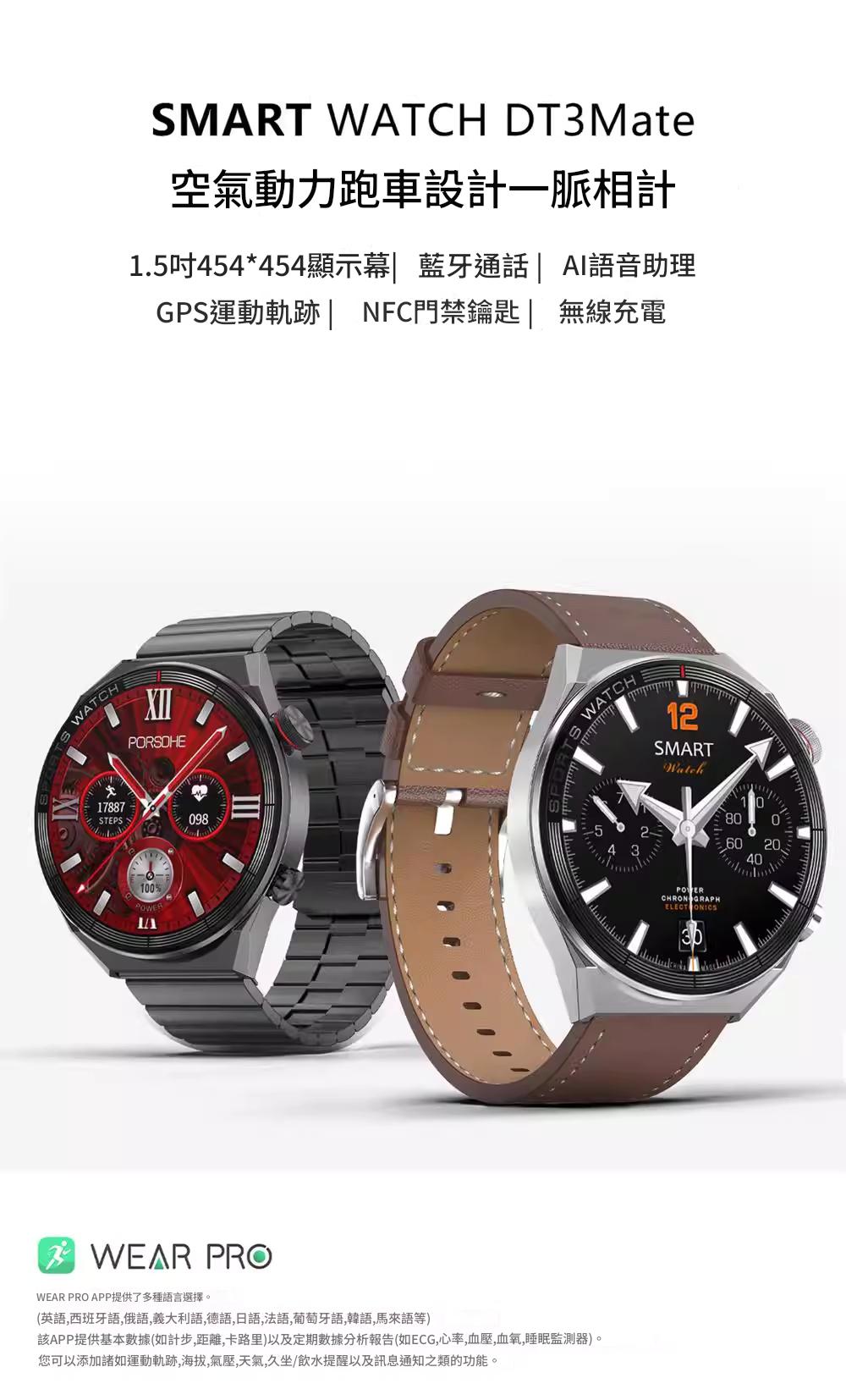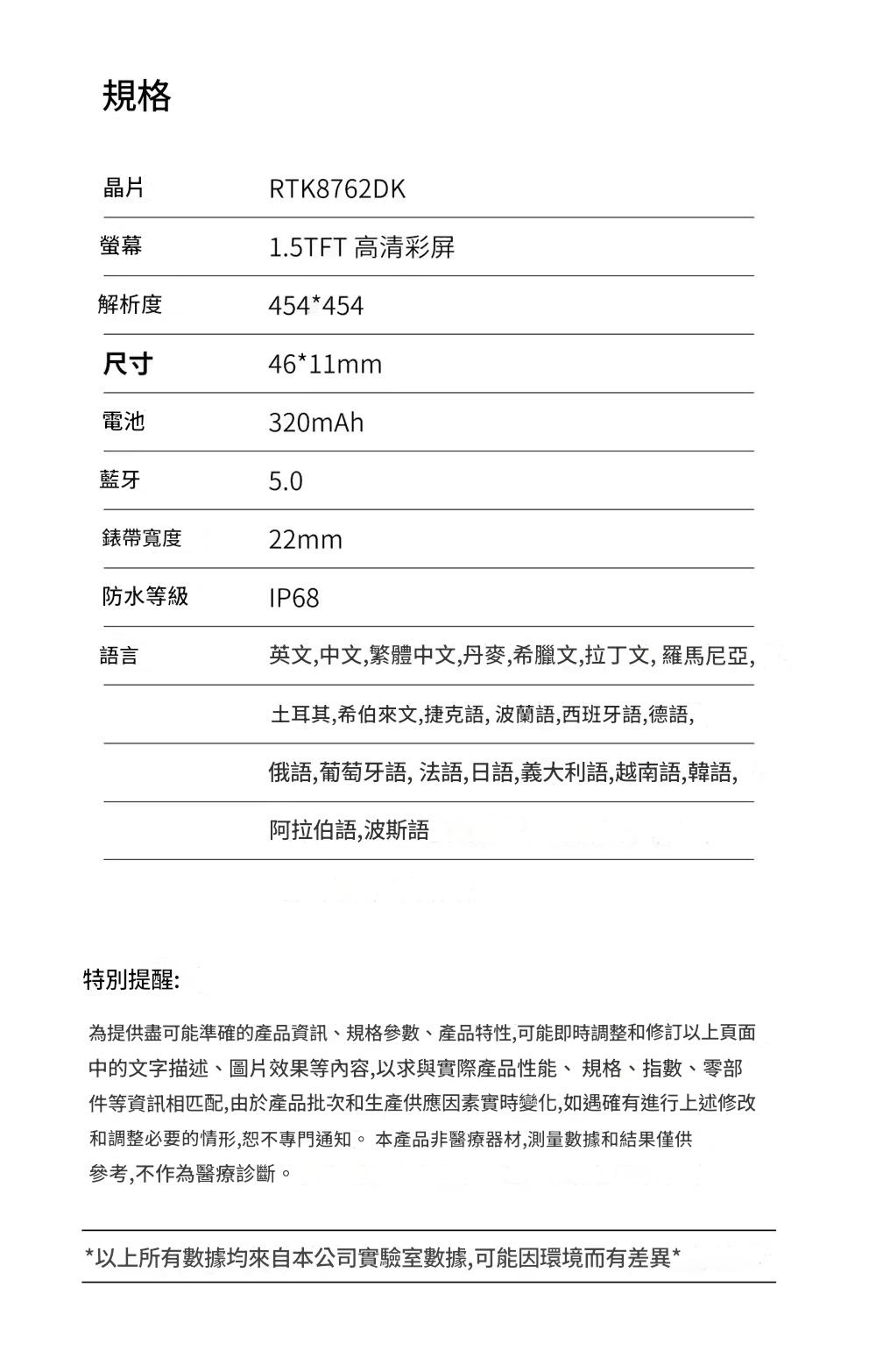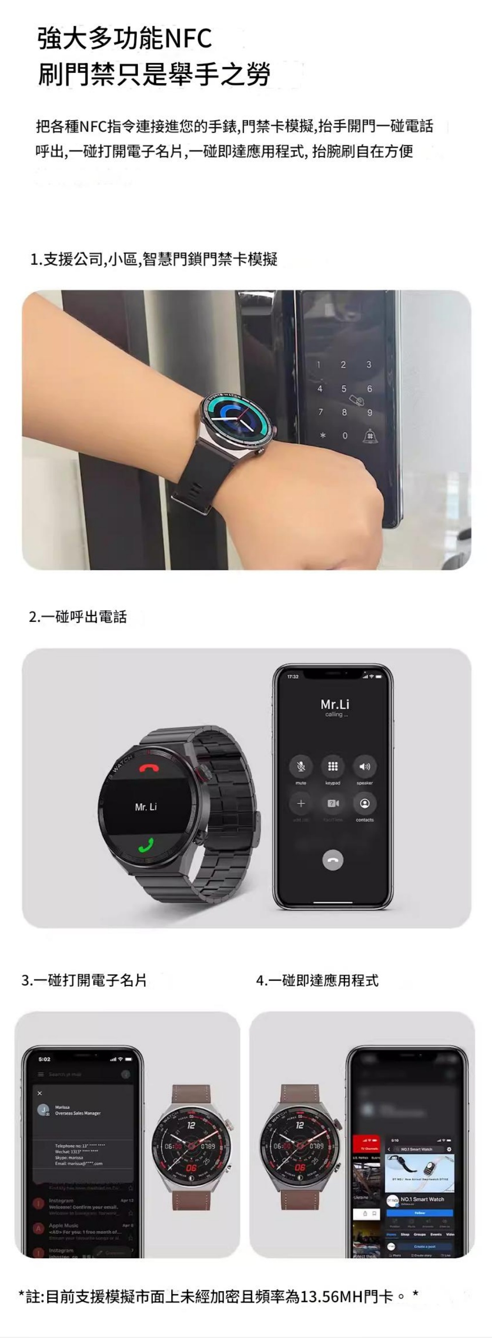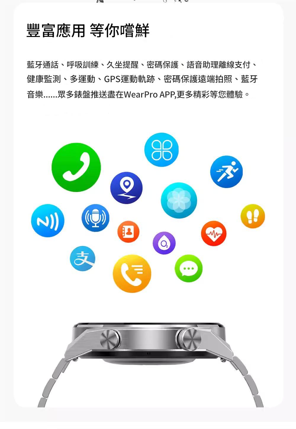 1.5吋顯示幕 藍牙通話 AI 語音助理 GPS運動軌跡 NFC門禁鑰匙 無線充電