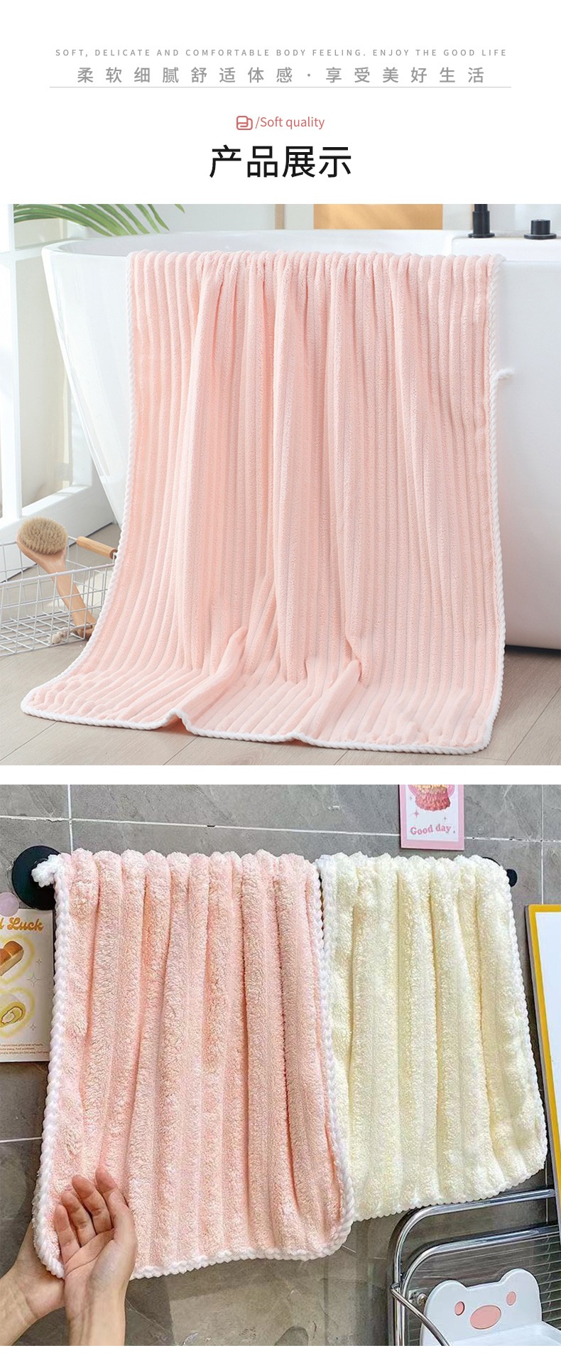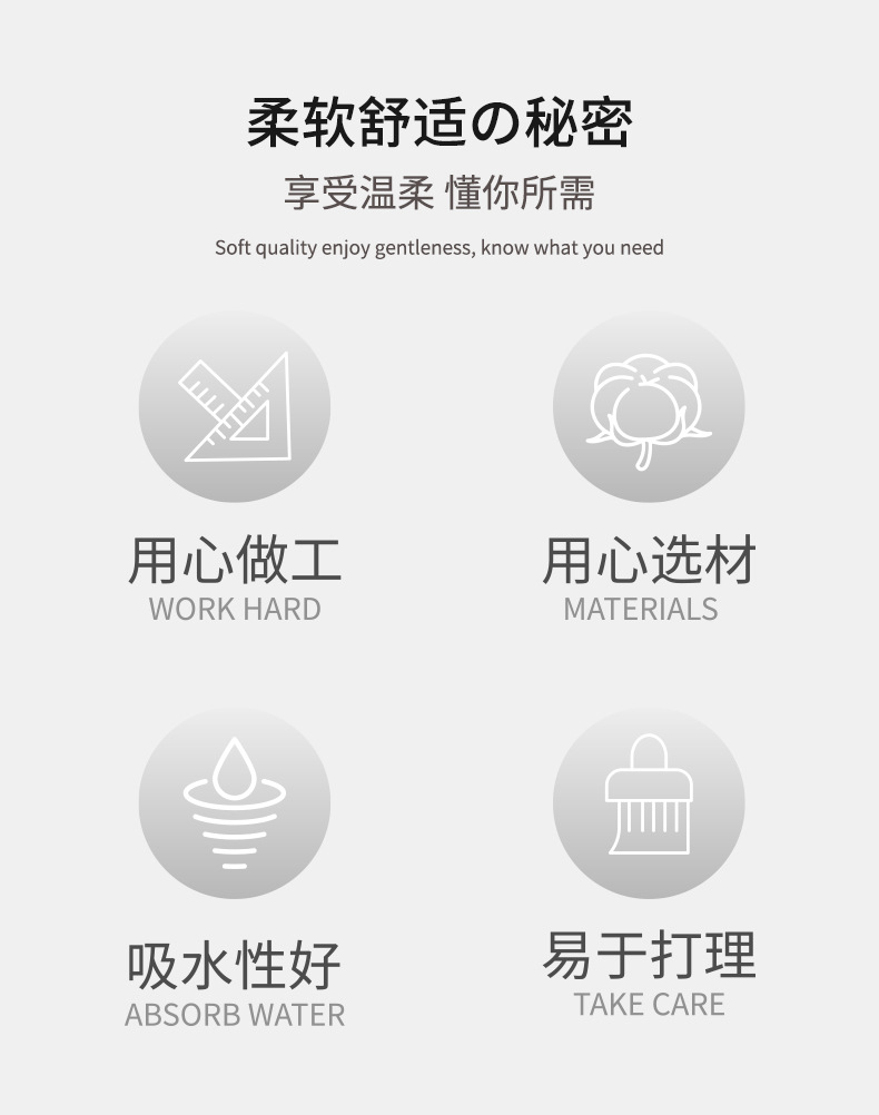 柔軟親膚,吸水性強,速乾透氣