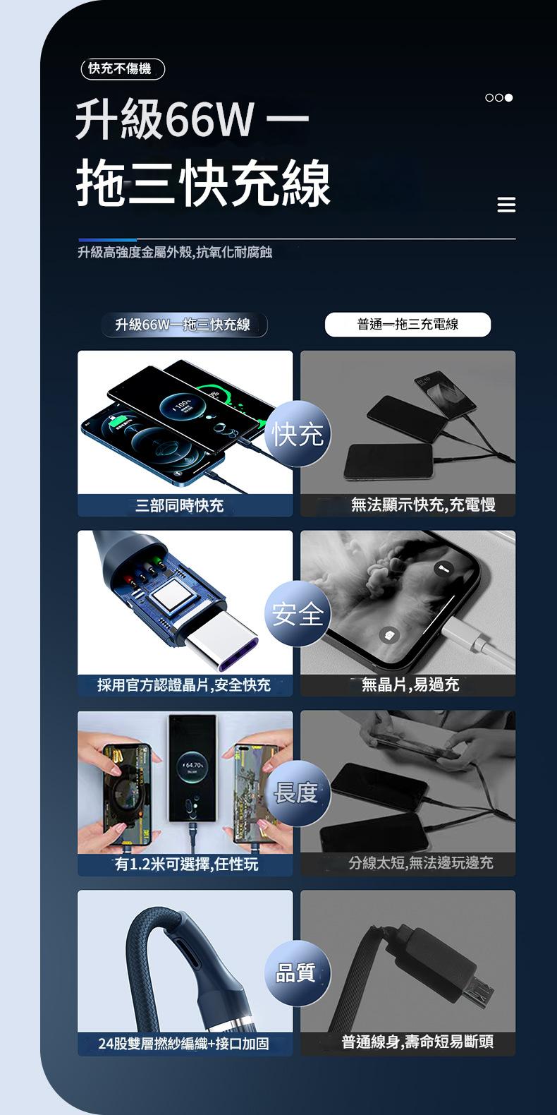 安全提速不必將就 升級編織尼龍線身 Type-c66W 超級快充 不開裂耐磨損 充電傳輸一線搞定